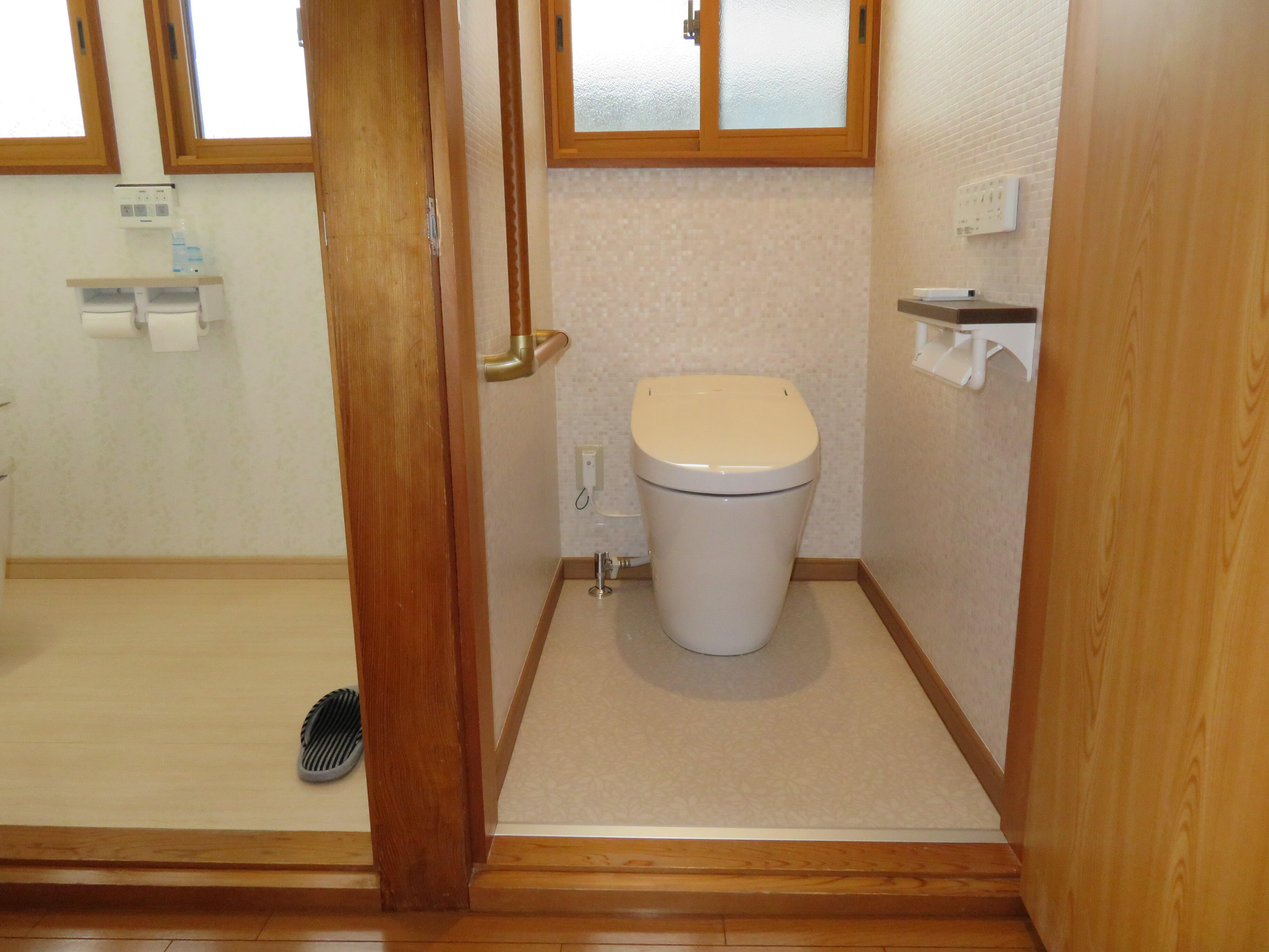 小便器からコンパクトトイレサティスSにリフォームしました。サティスSならタンクレスなので狭い空間でも設置出来ます。キレイ機能でお掃除もラクラクです。