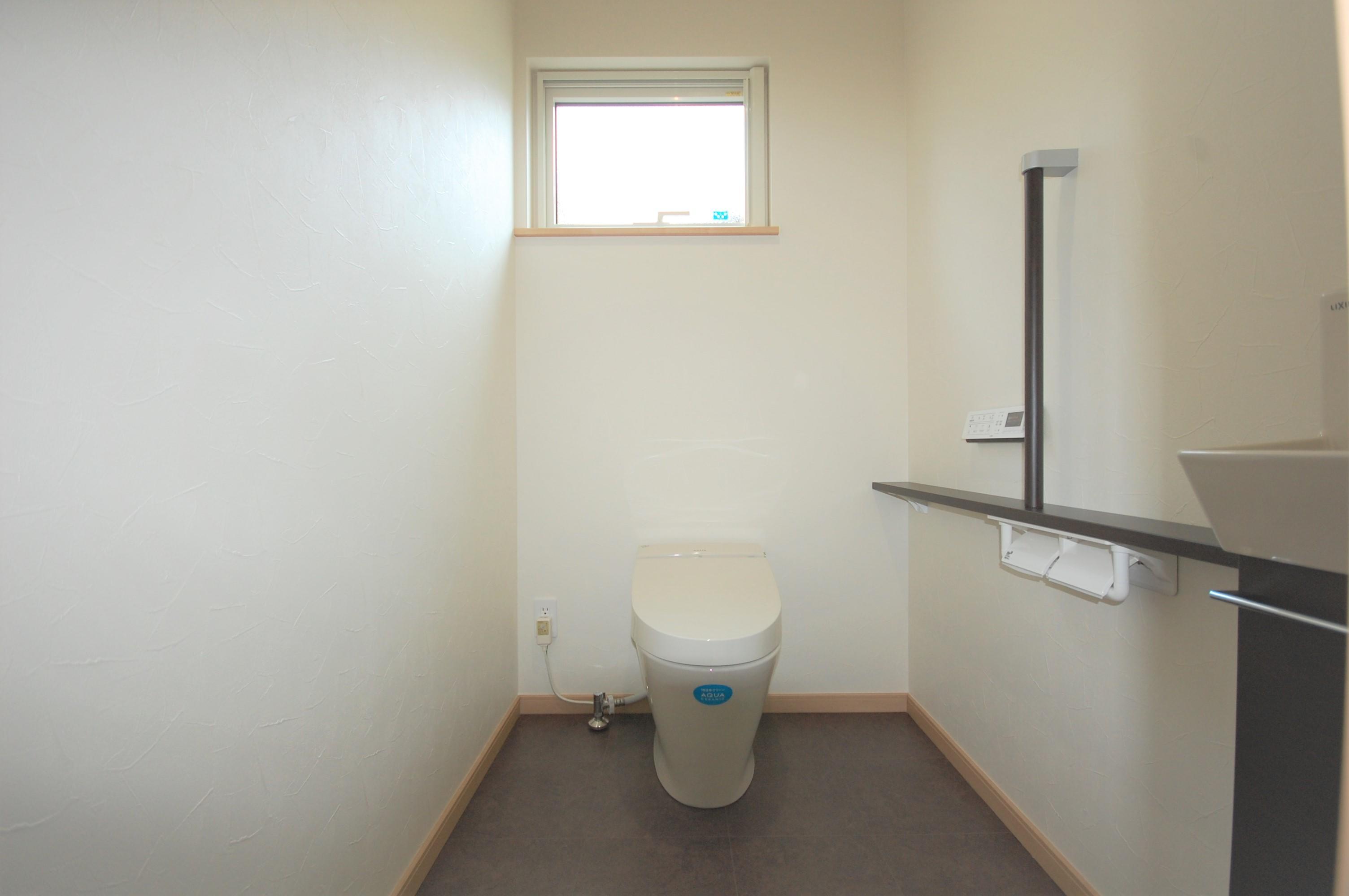 住まい丸ごと全面リフォームの1階部分リフォーム編です。タンクレストイレLIXIL「サティスS」はゆとりあるここちよいトイレ空間にしたいお客様おススメです。クリエダークの手すり&手洗い器が居心地よい雰囲気を演出してくれます。