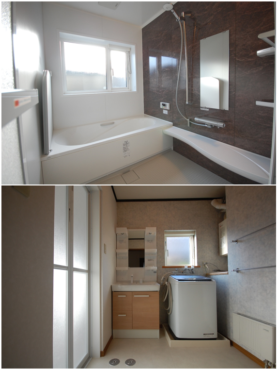 浴室&洗面化粧台リフォームのご紹介です。老朽化した浴室をLIXILのシステムバス「アライズ」に取替しました。特殊表面処理が施された床「キレイサーモフロア」は冷たさを感じにくいだけでなく皮脂汚れなどがつきにくくなっておりお掃除ラクラク。さらに、お掃除が面倒な排水口は「くるりんポイ排水口」におまかせ。浴槽のお湯を抜くだけで渦を起こし排水口を洗浄してくれます。洗面化粧台はLIXIL「オフト」に取替しました。水ハネの少ないシャワー吐水は従来と同じ使い心地で20%も節水してくれるとてもエコな水栓です。お手入れのしやすさが自慢の浴室と洗面化粧台です。