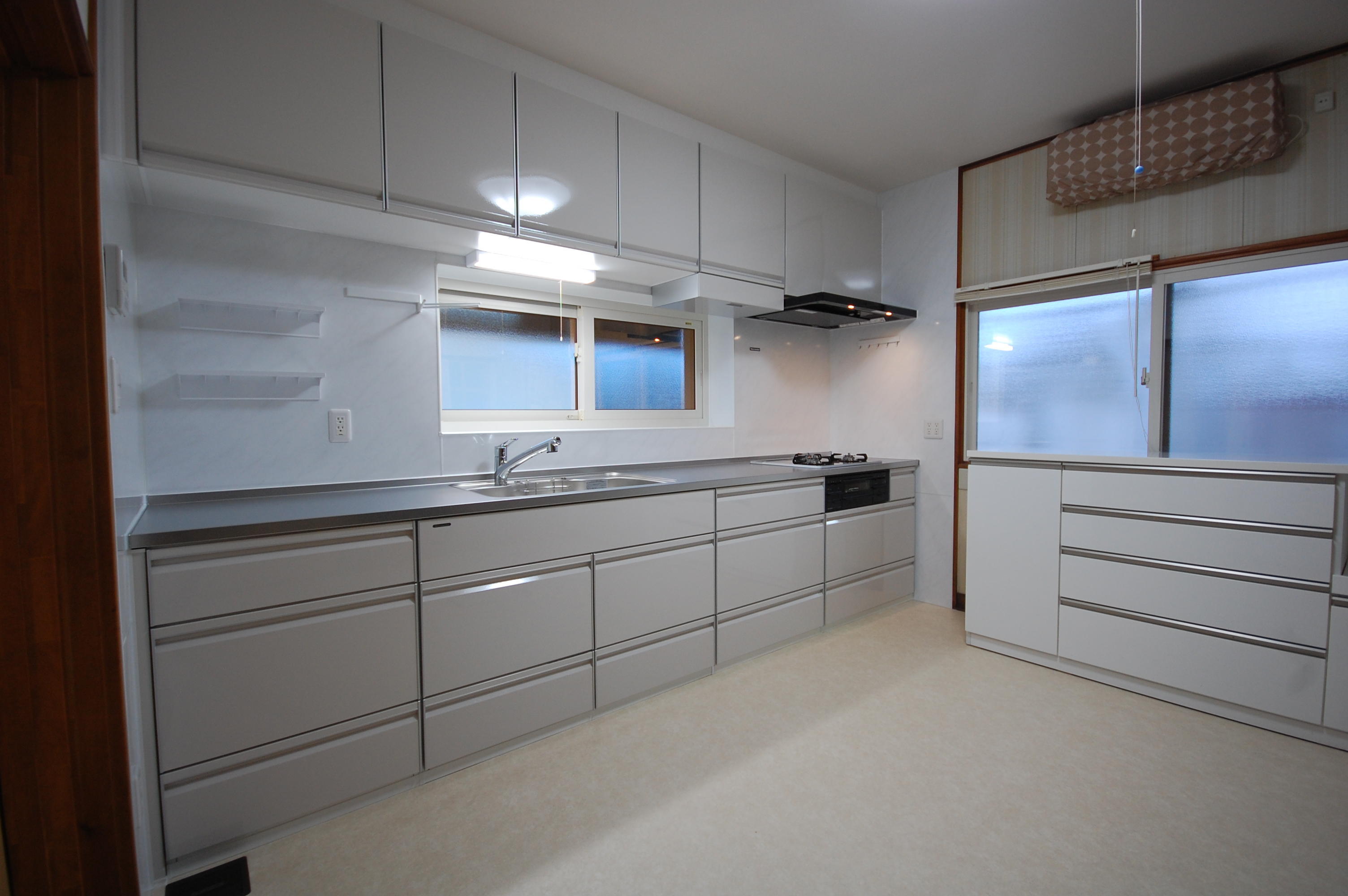 キッチンリフォームのご紹介です。タカラのシステムキッチンは汚れに強くお手入れしやすいホーロー素材なので、お掃除がとても楽です。また、マグネットの取付が可能なので、マグネット収納「どこでもラック」や小物置きなどを取付けすれば、使い勝手の良いオリジナルキッチンに早変わり。吊戸棚下には収納スペース「アイラック」を設けました。使用しない際には収納が隠れるので見た目がスッキリします。以前のキッチンよりも奥行きが10㎝以上広くなったことで、調理の作業スペースが広くなり使い勝手の良いキッチンとなりました♪