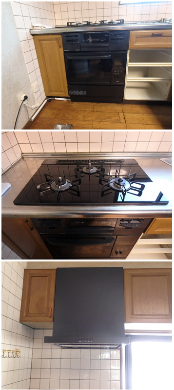 電子コンベック・ガスコンロ・レンジフード取替のご紹介です。ガスオーブンと電子レンジが一体となった電子コンベック。1台でオーブン・電子レンジとしての単独使用はもちろん、オーブンと電子レンジの併用で火の通りにくい食材をムラ無くスピーディーに調理することもできます。お料理が好きでパンやお菓子をよく作るH様。庫内が広く温度調整もしやすくなったことで焼きムラが無くなり、失敗することがほぼ無くなったそうです。ガスコンロ・レンジフードも一緒に取替いただき、お掃除もぐんと楽になった快適キッチン空間でお料理を楽しんでくださいね♪