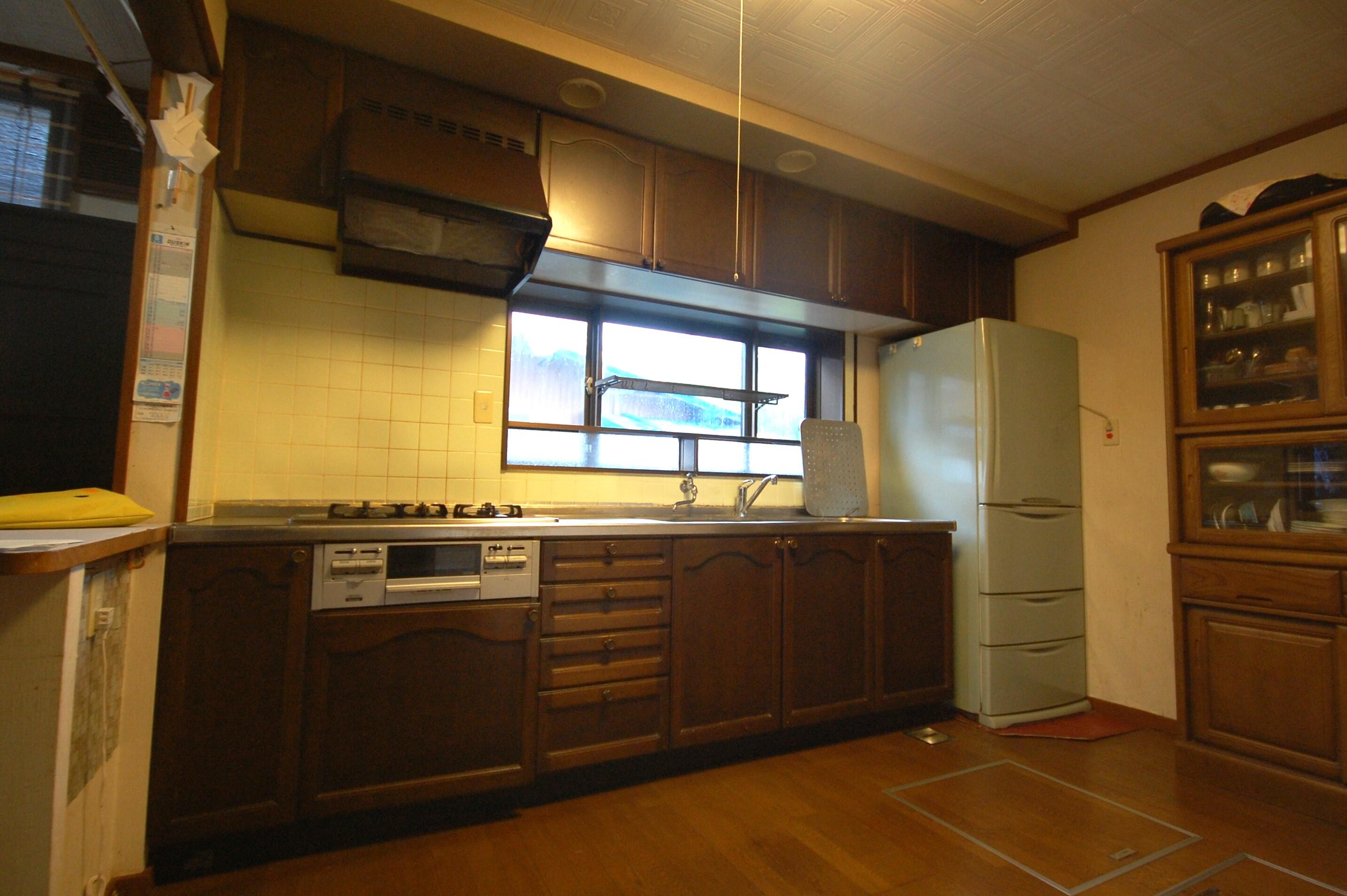 キッチンリフォームのご紹介です。老朽化による漏水などでキッチンの取替えを検討していたA様。タカラのシステムキッチン「トレーシア」に交換しました。「らくエルシンク」は、大きなフライパンもゆったりと洗える奥行き50㎝の広々シンク。汚れやすい排水口は継ぎ目が無くお掃除楽ちんです。また、吊戸棚は撤去し埋め込み式ダウンライトを取付けたことで開放的な印象に。木調からコンクリート調のデザインになったことでお部屋の雰囲気がガラッと変わり、落ち着きのあるスタイリッシュなキッチン空間になりました♪