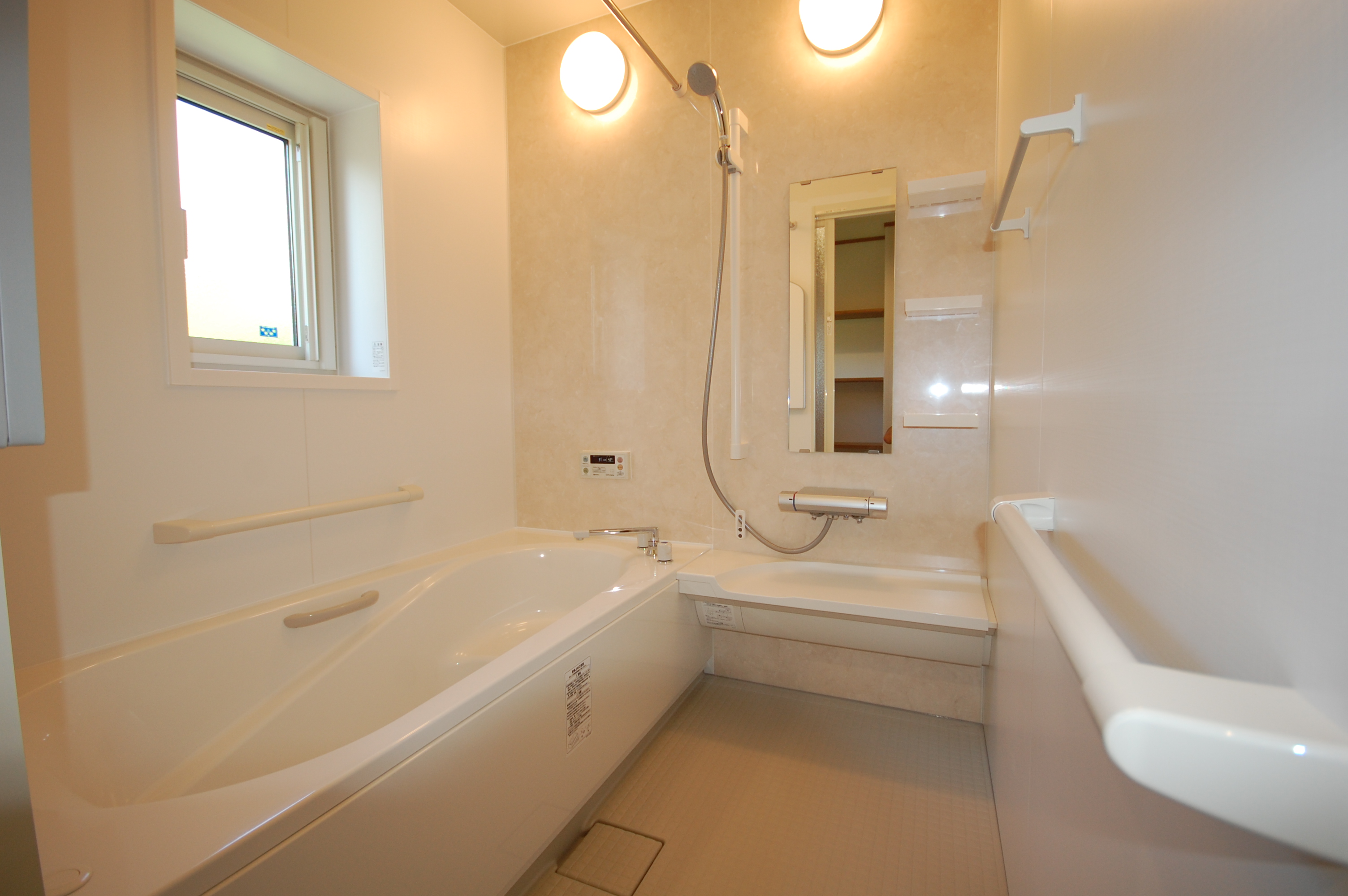 浴室をユニットバス「アライズ」へ変更しました。お客様が安全に入浴ができ暖かいお風呂を希望されていたので、手すりを2ヶ所に設置し浴槽内にも握りバーをつけました。また換気乾燥暖房機をつけたことで、寒さ対策はもちろん、ちょっとした乾燥機代わりにも利用ができ便利になりました‼