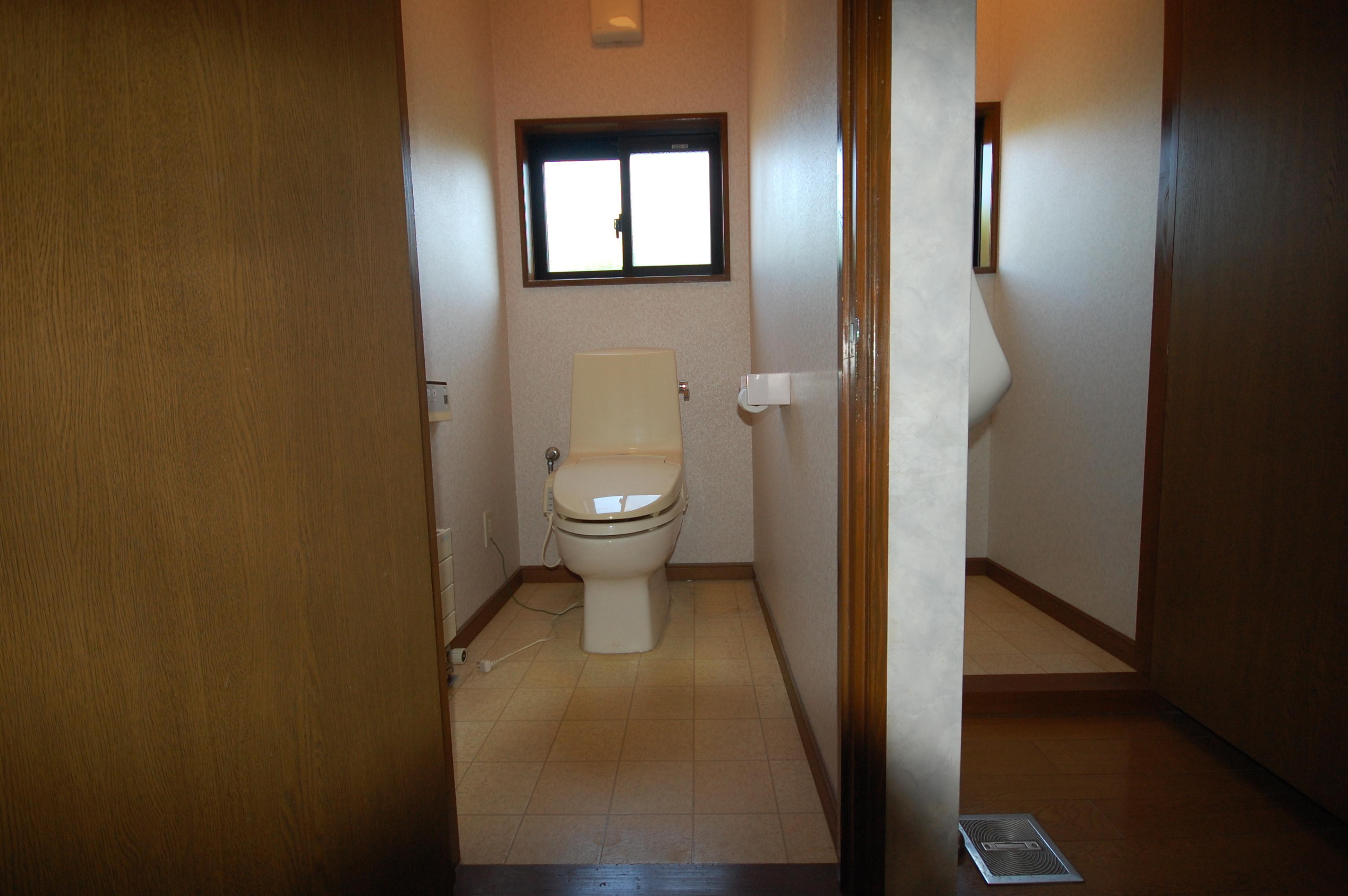 タンクレストイレプレアスLSへ取替です。以前は小便器と大便器がわかれていましたが、空間をひとつにし広々と利用できるようにしました。グリーンリーフの壁紙がなんだかとても癒され長居してしまいそうな気がするのは担当だけでしょうか?コンパクトな手洗いや物置付きのカウンターなどもおススメなので、トイレリフォームの際には是非採用ください♪