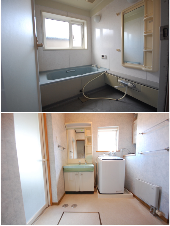 浴室&洗面化粧台リフォームのご紹介です。老朽化した浴室をLIXILのシステムバス「アライズ」に取替しました。特殊表面処理が施された床「キレイサーモフロア」は冷たさを感じにくいだけでなく皮脂汚れなどがつきにくくなっておりお掃除ラクラク。さらに、お掃除が面倒な排水口は「くるりんポイ排水口」におまかせ。浴槽のお湯を抜くだけで渦を起こし排水口を洗浄してくれます。洗面化粧台はLIXIL「オフト」に取替しました。水ハネの少ないシャワー吐水は従来と同じ使い心地で20%も節水してくれるとてもエコな水栓です。お手入れのしやすさが自慢の浴室と洗面化粧台です。