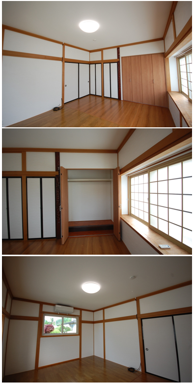 和室リフォームのご紹介です。一部畳だった部分は断熱材をしっかりと敷きこみフローリングに変更。和室のじゅらく壁は、じゅらく壁用の下地処理をすることで壁クロスへの変更ができます。床の間はハンガーパイプ付き枕棚と折戸を取付することでクローゼットに大変身。東面の掃出し窓は腰高窓に取替えしました。腰高窓にすることで窓下のスペースが有効活用できます。N様邸は北海道・東北限定の高断熱性能に優れたガラスを使用した窓なので寒い冬でも安心です。また、ブロンズ色を施したガラスなので、日中は部屋の様子が見えにくくなっておりプライバシーの確保ができます。新しくなったお部屋でゆったりとした時間をお過ごし下さい。