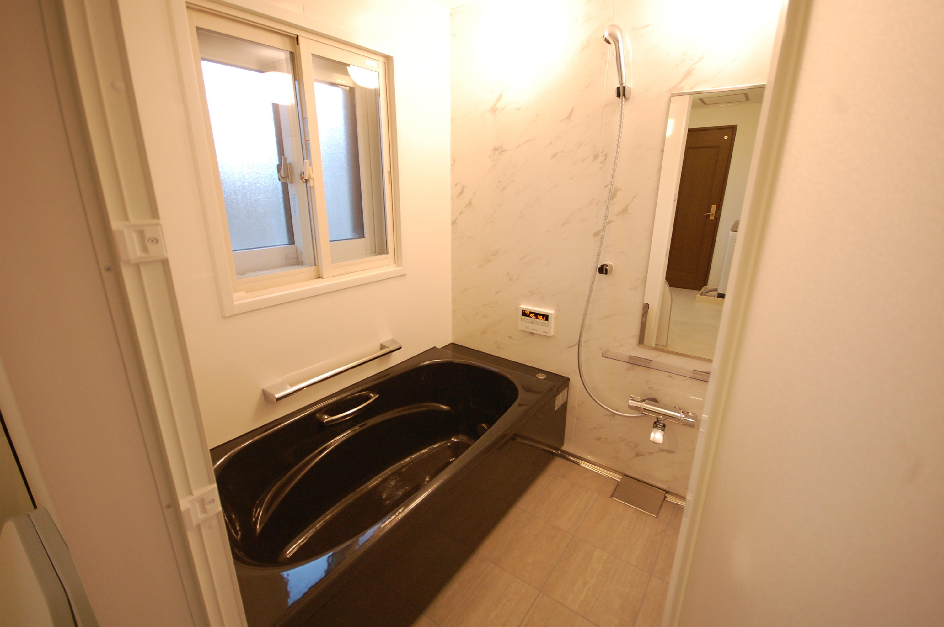 浴室リフォームのご紹介です。今回取替えしたのはタカラシステムバス「プレデンシア」。大理石調のホーロー壁パネルと重厚感のあるブラックの浴槽が贅沢な空間を演出します。蓄熱性のある鋳物ホーロー素材の浴槽は、背中から感じる温もりとお湯のダブル温浴効果により温泉に入った時のようなあたたかさが長続き。また、一般的な浴槽の表面に比べて約5倍のなめらかさを誇り、汚れを落としやすくお手入れが楽ちんです。実際にタカラショールームを見学いただいたことで、お施主様理想の浴室が完成しました♪