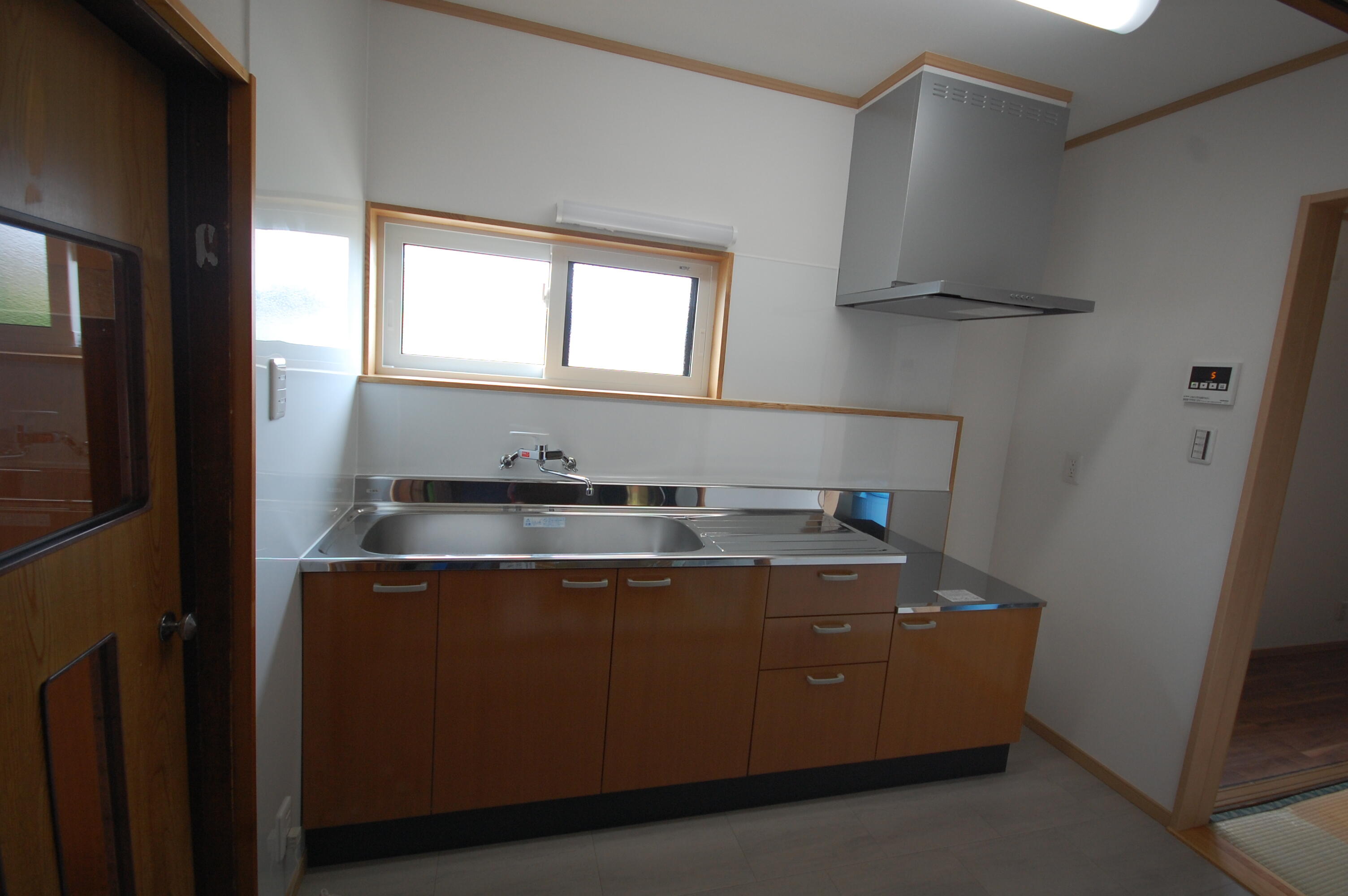 住宅改修工事の台所部分のご紹介です。お客様より水廻りの改修や間取りの再計画リフォームのご相談を受け、ご家族の生活スタイルや嗜好に合わせたキッチン・浴室・トイレなど水廻り住宅設備器具の取替他、外壁や窓の交換も行いました。台所部分の改修では出入口の位置・家事動線を考え、LIXIL製のコンパクトなセクショナルキッチンGSシリーズを提案・設置いたしました。キッチン廻りの壁はお掃除のしやすいキッチンパネル仕上げにし、窓を「LIXIL樹脂窓EW」に交換・サイズダウンしたことにより冬の寒さ対策にもなりました♪