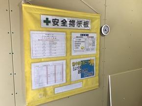 このように現場に安全掲示板に注意喚起の掲示物を掲示したり、温度湿度計を設置しました。