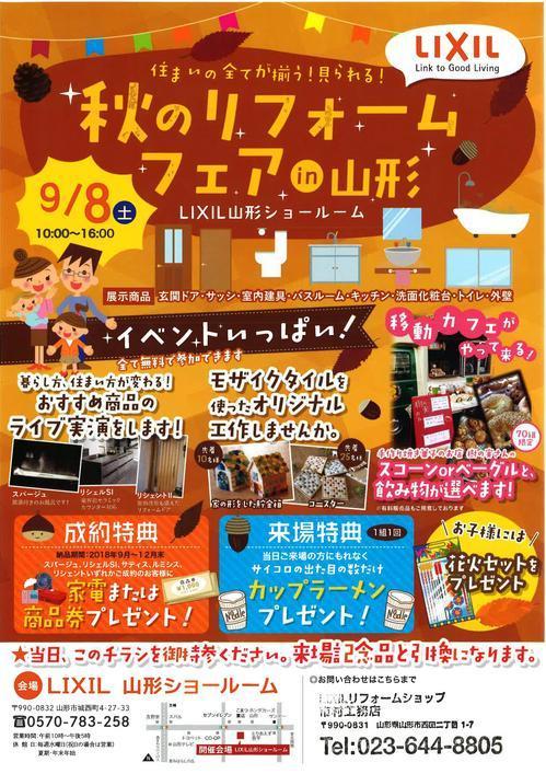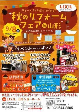 9月8日(土)にLIXIL主催の秋のリフォームフェアがLIXIL山形ショールームで開催されます。