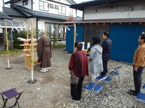 工事の着工にあたり、神職をお招きして神様にお供え物をし、