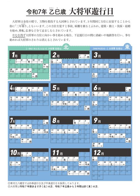大将軍は金星の精で、万物を殺伐する大凶神とされています。