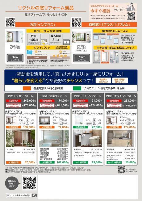 先進的窓リノベ2025事業・給湯機省エネ2025事業・子育てグリーン住宅支援事業
