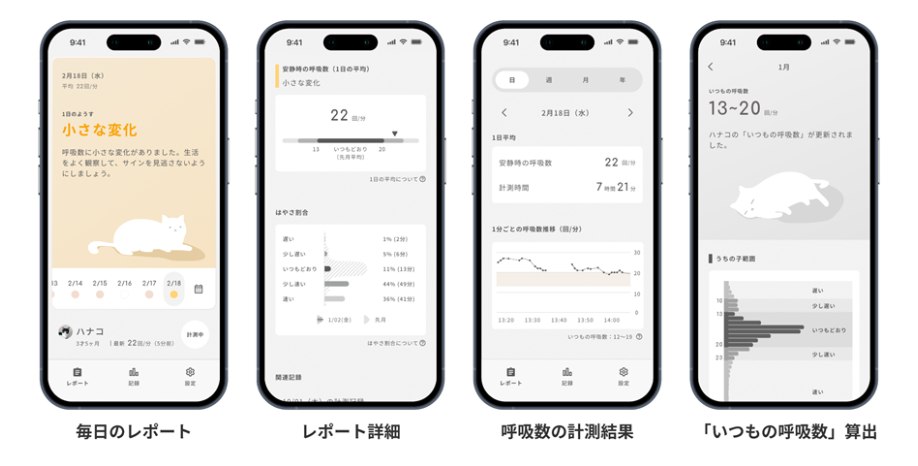 専用のアプリからその猫固有の「いつもの呼吸数」を毎月算出し、