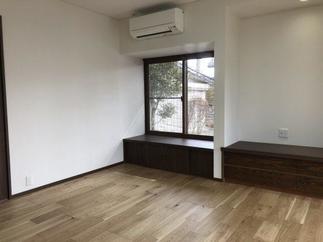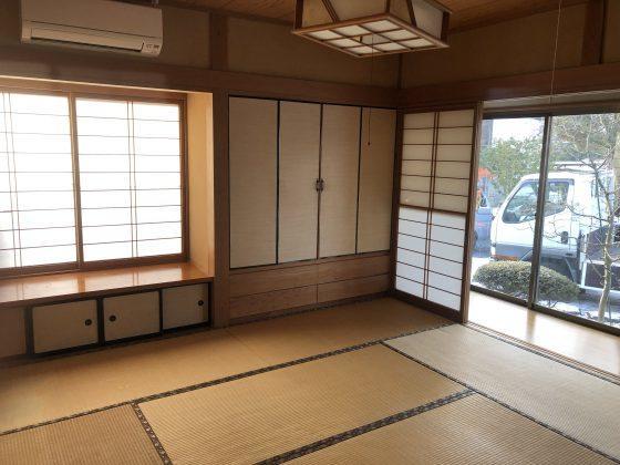 地元に戻ってくる家族のために和室から洋室への内装リフォーム。 縁側が障子で仕切られていて、なんとなく狭さを感じる空間を広く感じれる空間へ。