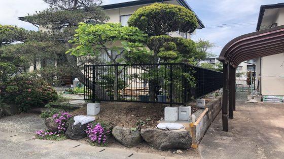 雪の影響で倒れかけていた竹垣をアルミフェンスに更新