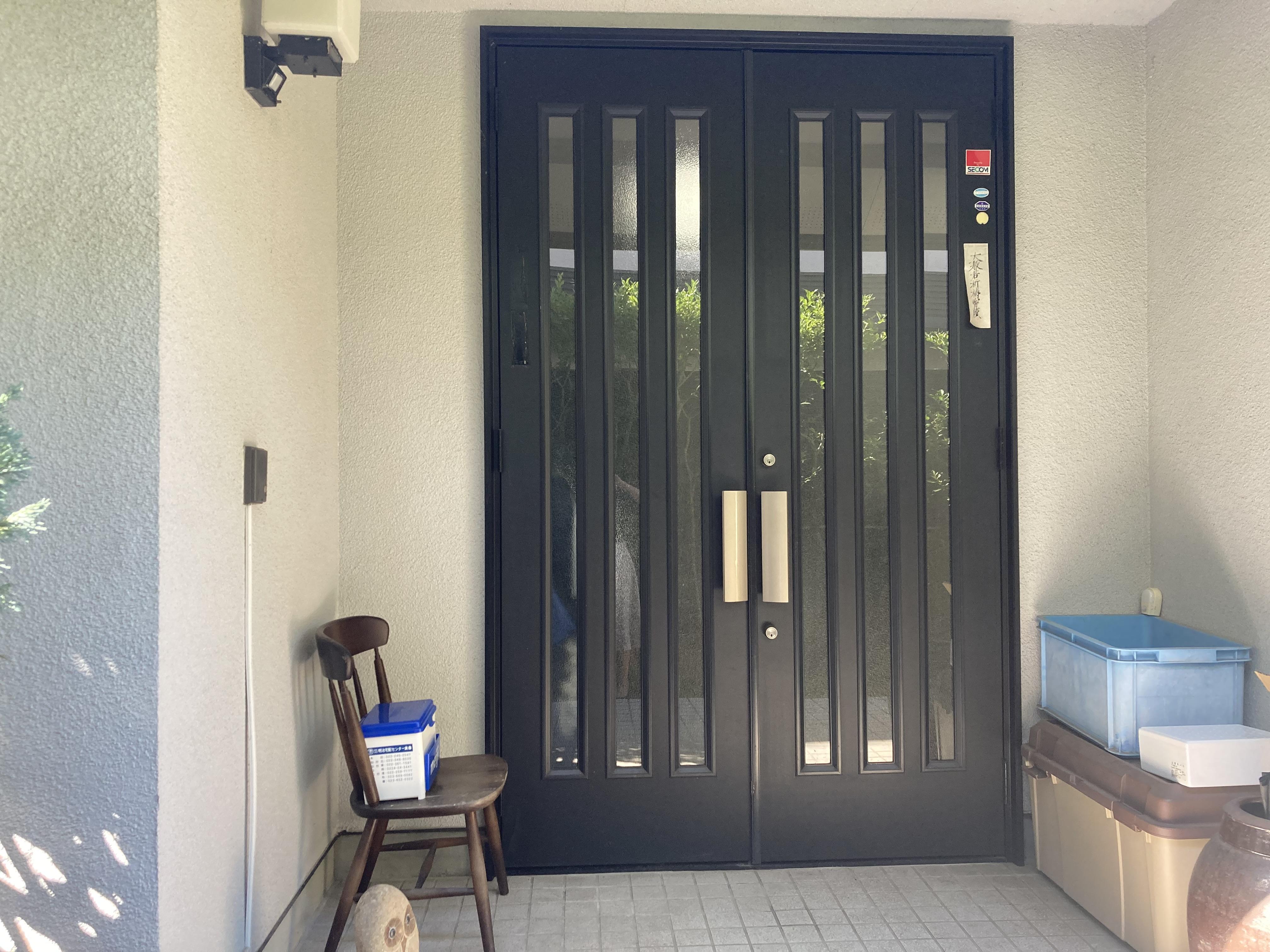 断熱効果もあるので、寒さ対策はもちろん玄関ドアが変わっただけでお家の印象が変わります。背の高いドアだったので、あえて欄間を付けてバランスの良い大きさに。