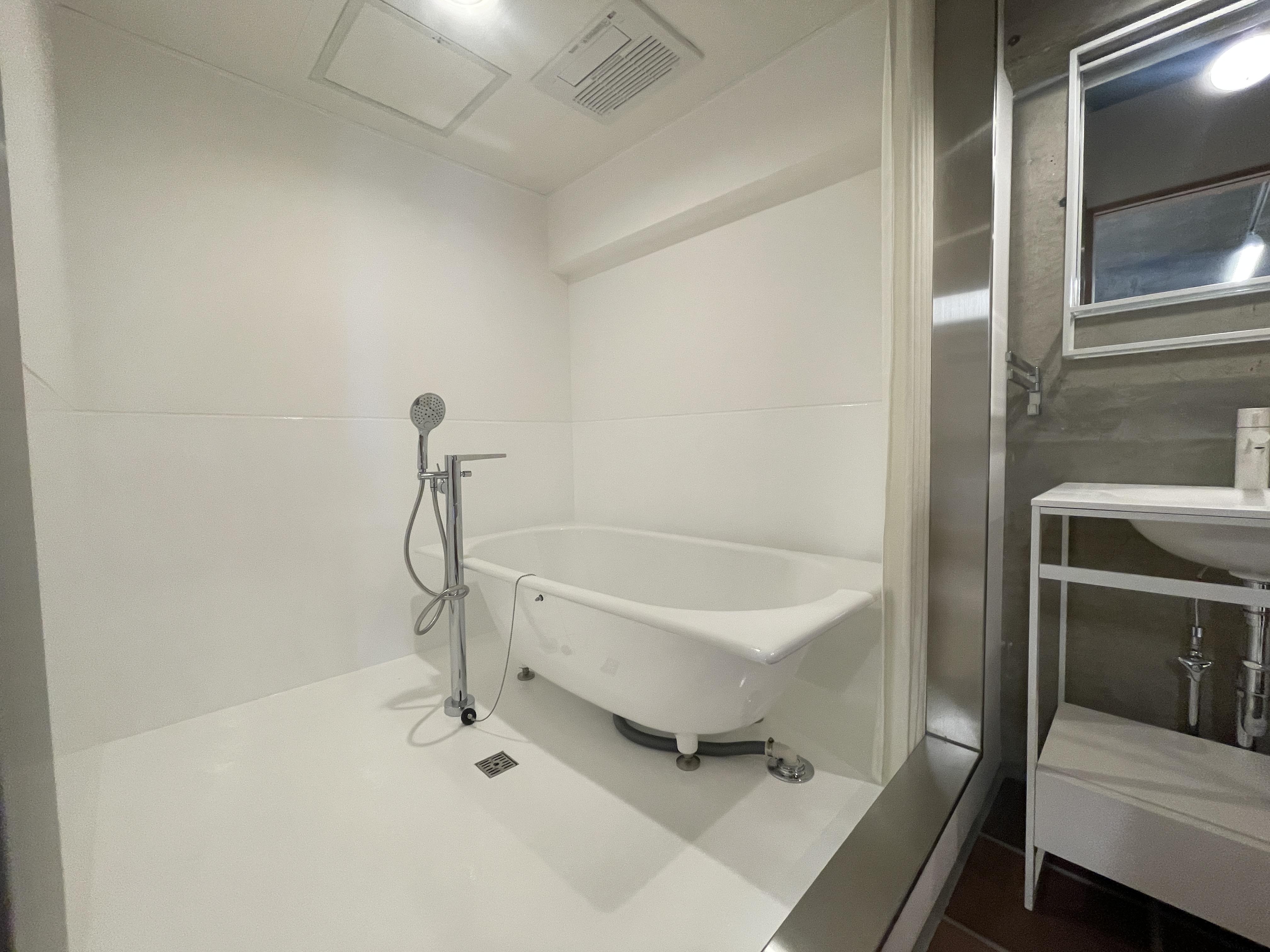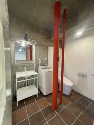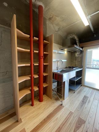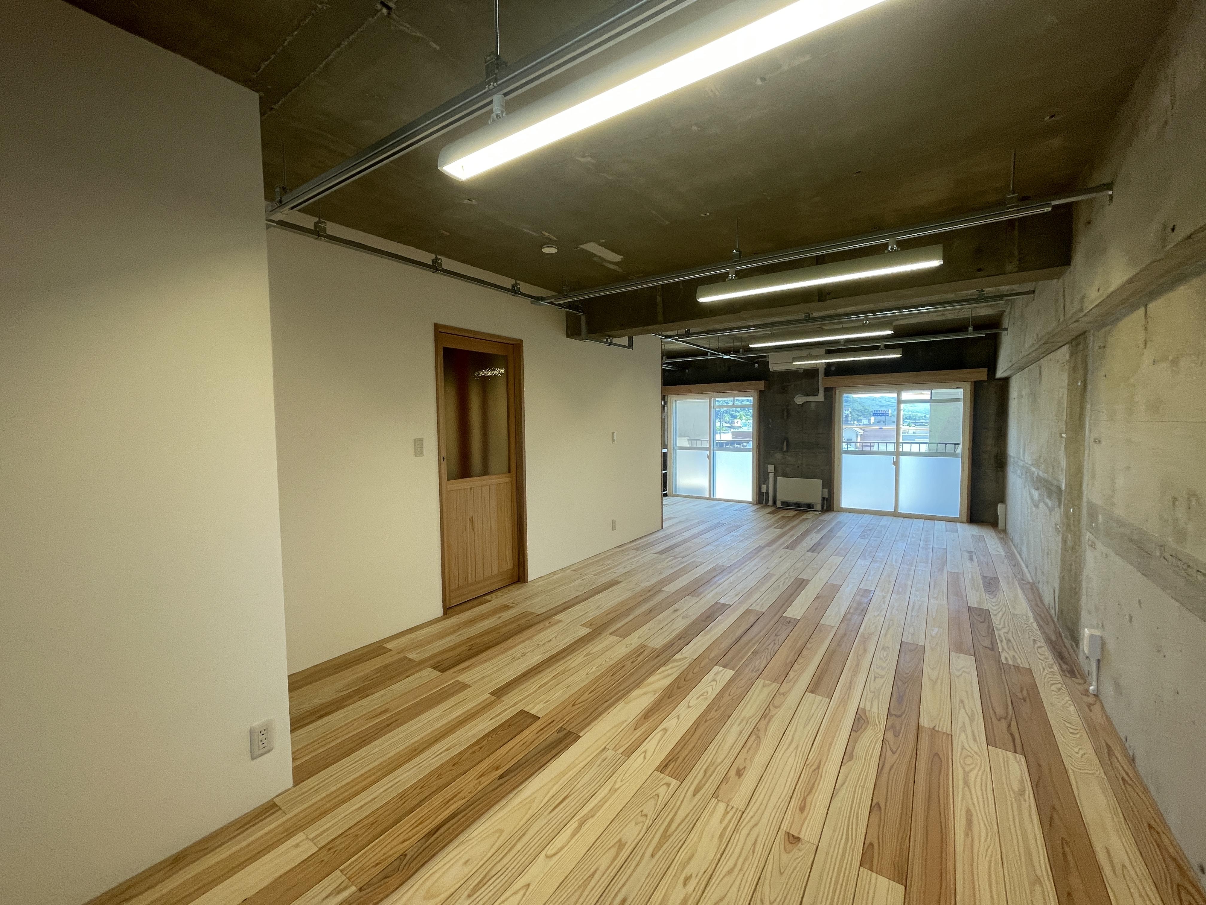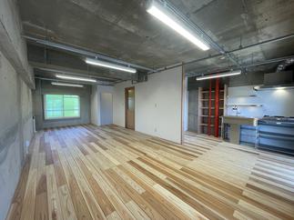 3DKの間取りだった壁をすべて取り払い、開放的な空間にリノベーションしました。 床は無垢フローリングを敷き、足元に温かみを。 壁と天井はコンクリート躯体を表し、モダンに仕上げました。