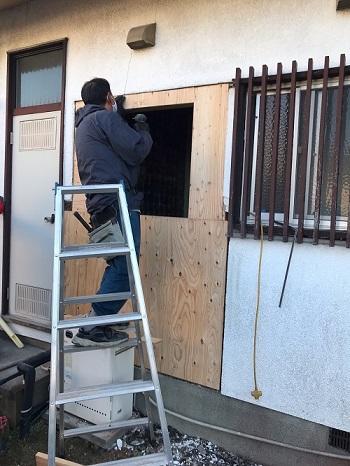 今回は、浴室・洗面室の窓を交換。大工さんが窓を取り付け中です。