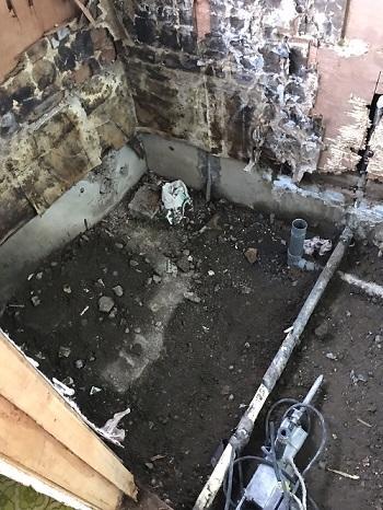 ↑↑浴槽があった場所です。排水管に蓋をして、解体中のゴミが入らないように、しっかりと対策をします。