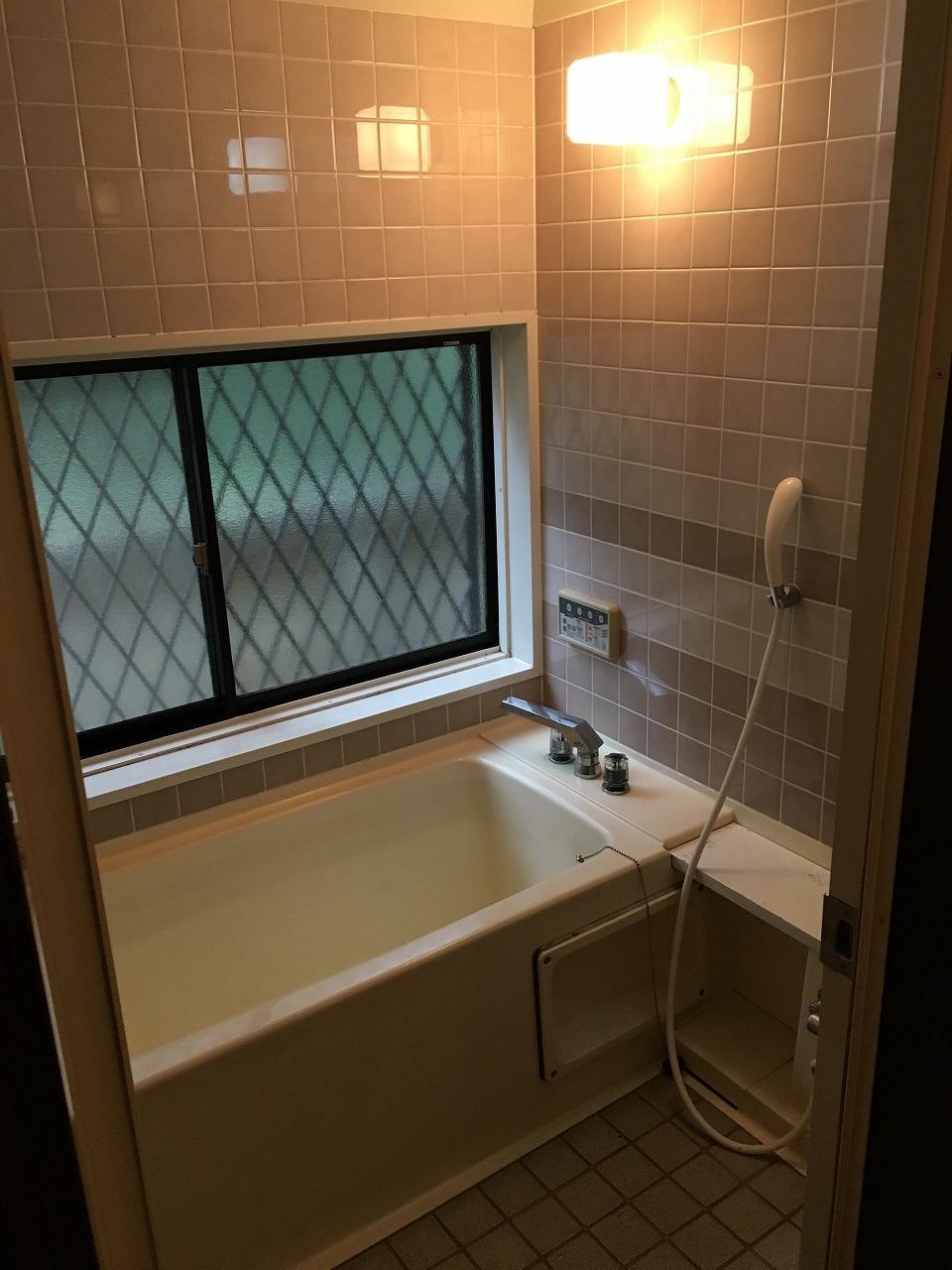 当店人気の浴室です。ベージュの壁が上品ですね。