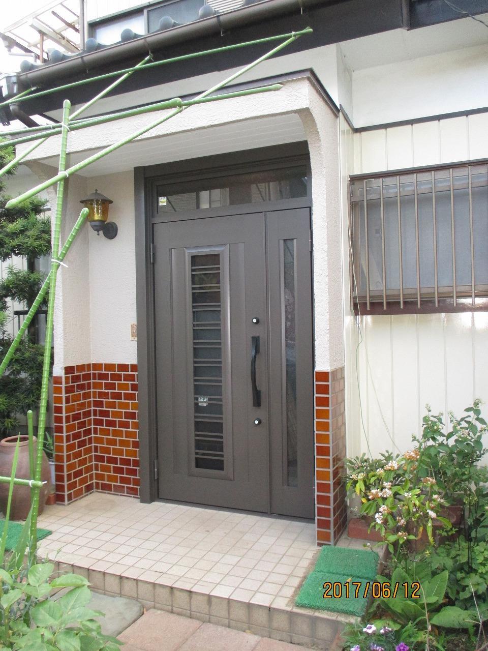 カバー工法の1DAYリフォーム、新しくなった玄関ドアと、四季折々のお花が咲いている玄関まわりが、より一層お家を引き立ててくれます。