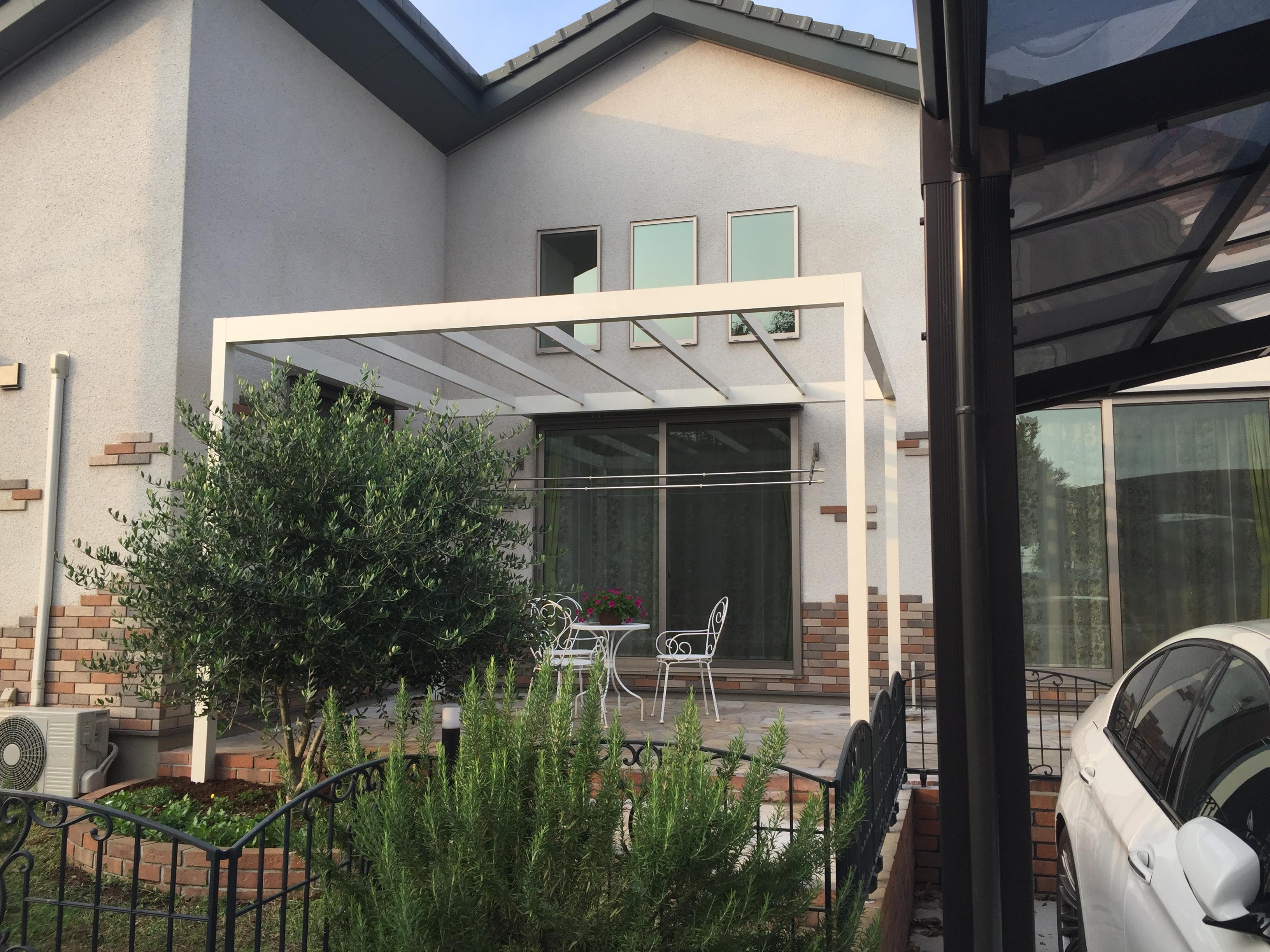 LIXILのプラスGのGフレームでパーゴラを設置しました。お庭に立体的な空間ができましたね。