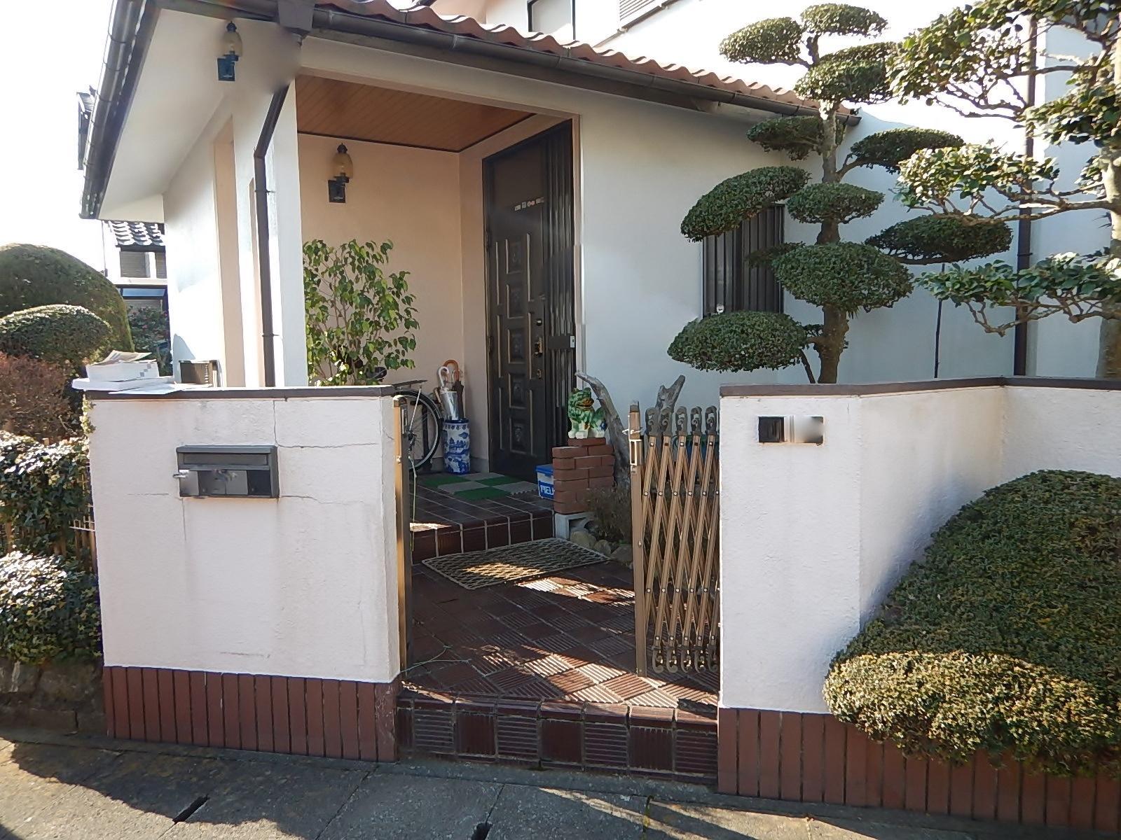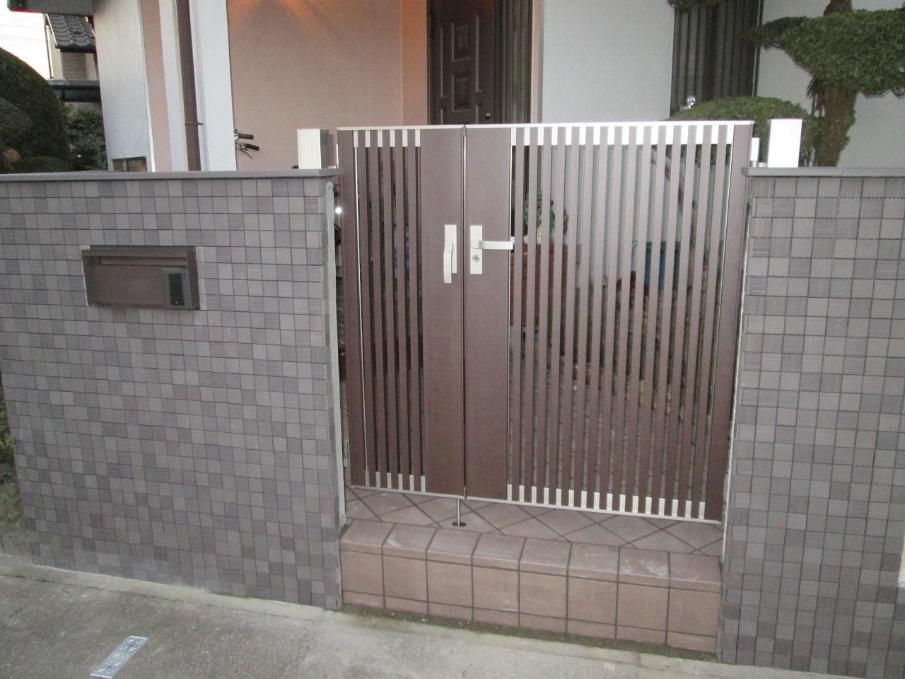 門扉と塀のリフォームです。グレーのタイル調の塀で洗練された印象になりました。
