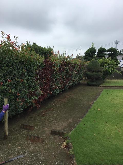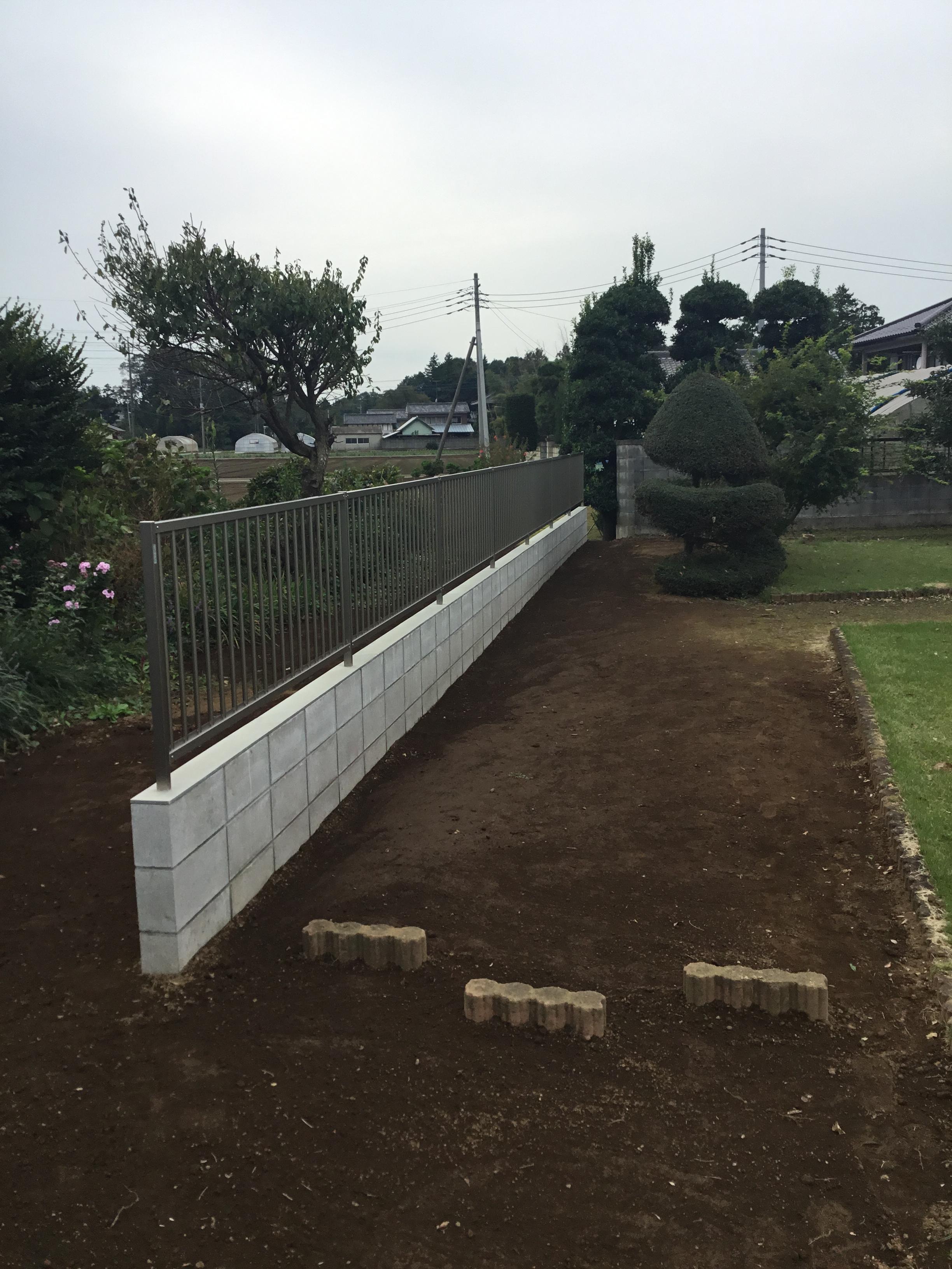 生垣を撤去してブロックとフェンスの塀を新設しました。