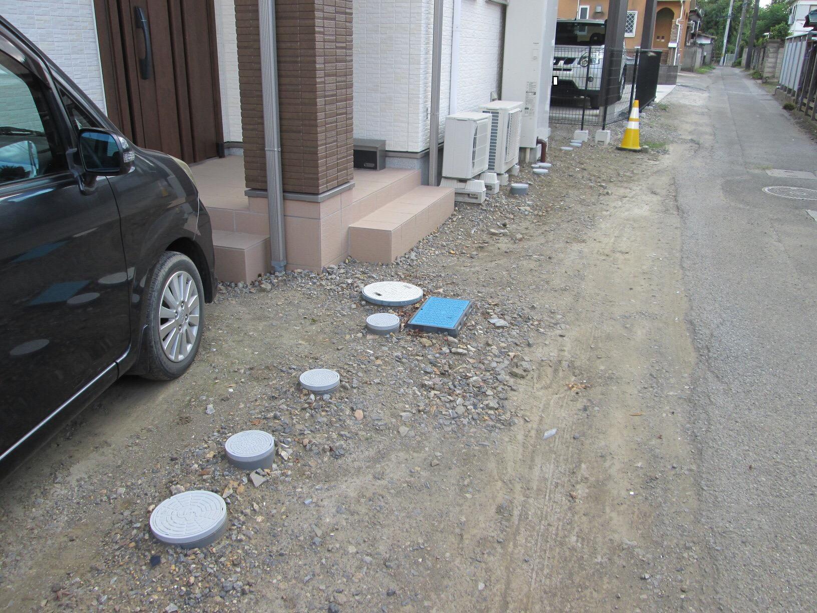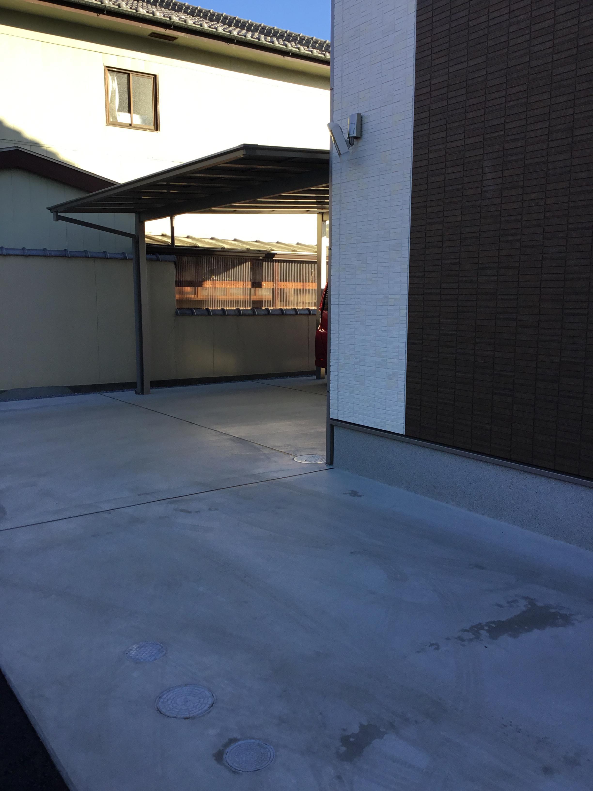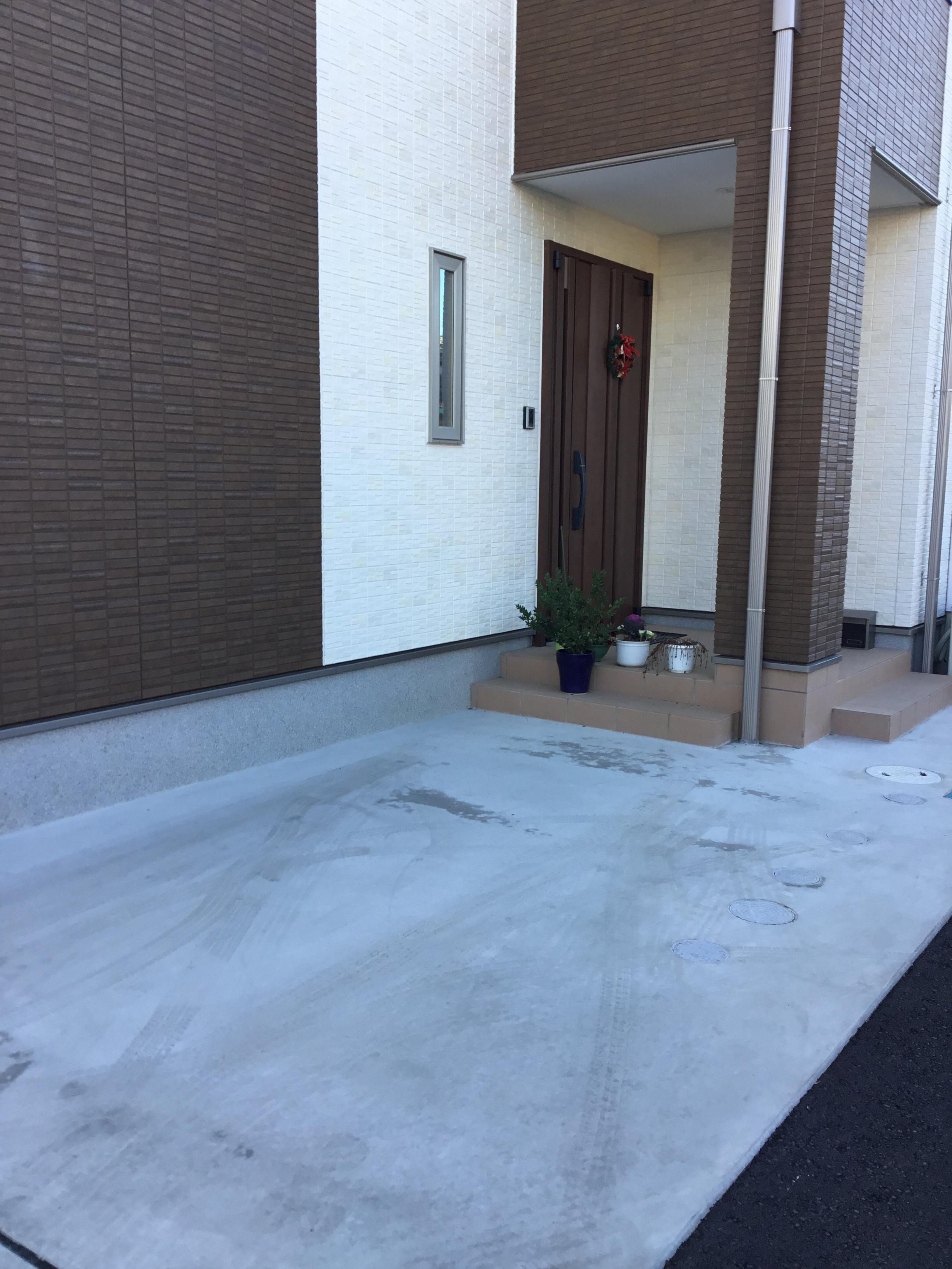 お家の敷地が道路より少し低いので、雨の日の水たまりにお困りでした。敷地を高くしてコンクリートを敷いたので水たまりのお悩みが解消されました。