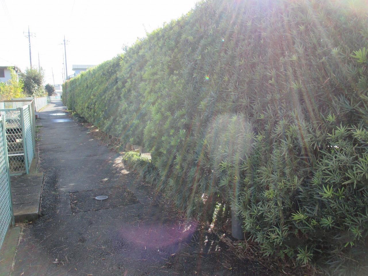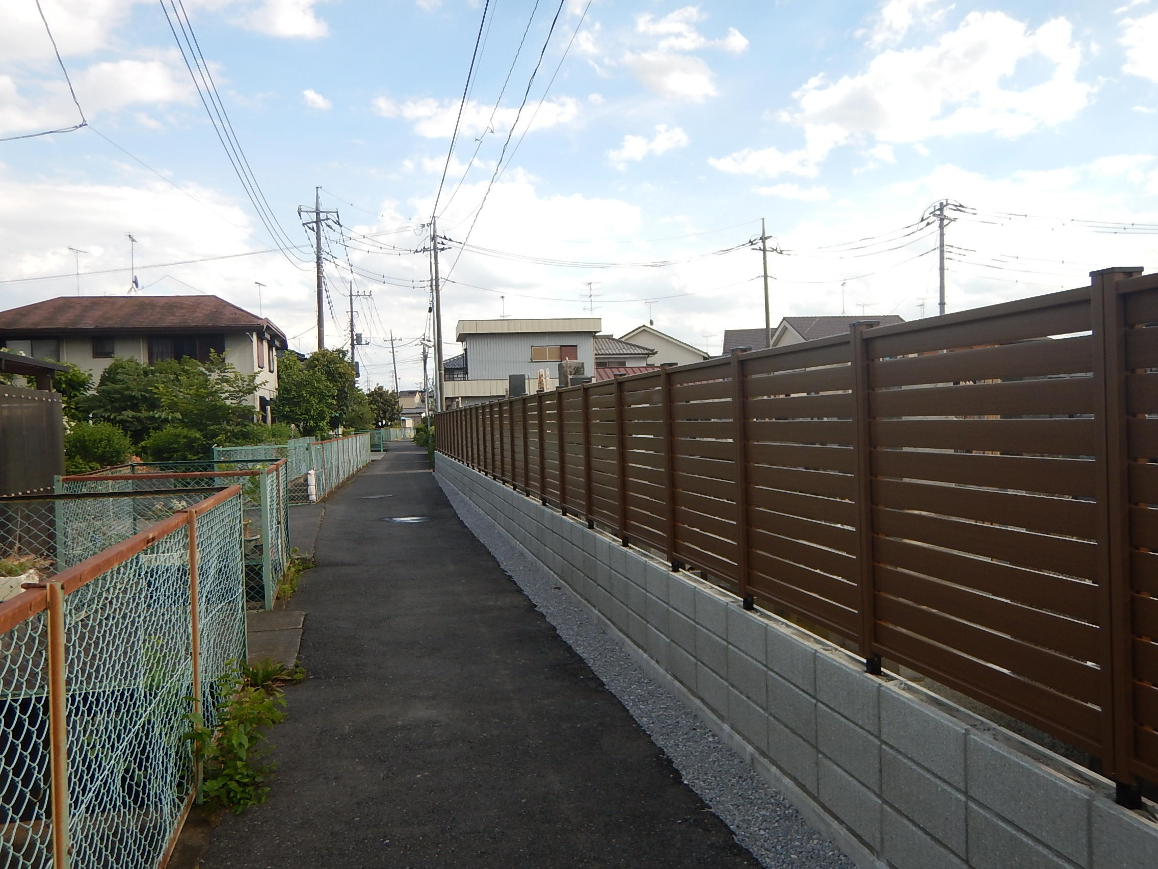 生垣の樹木撤去工事を行い、基礎工事、フェンス工事を行いました。40m以上ある長い塀工事でした。
