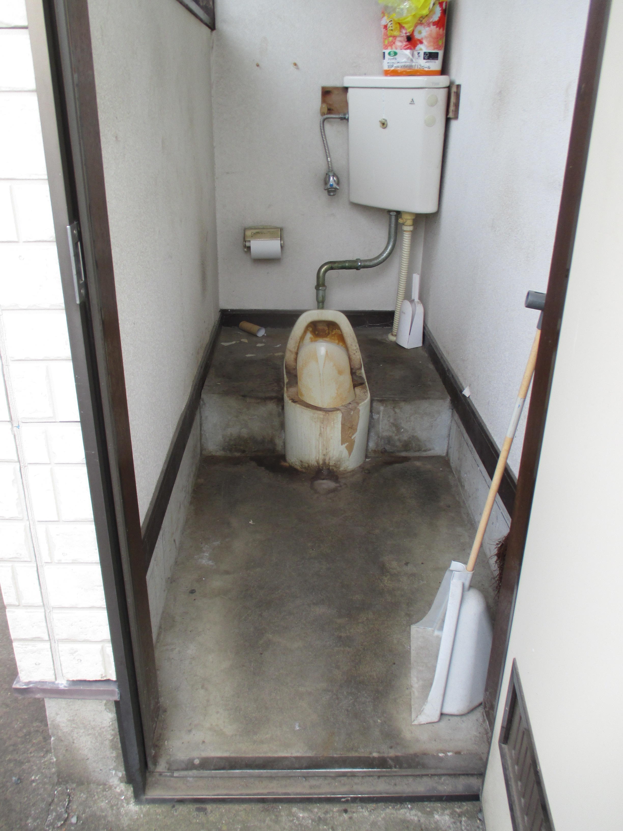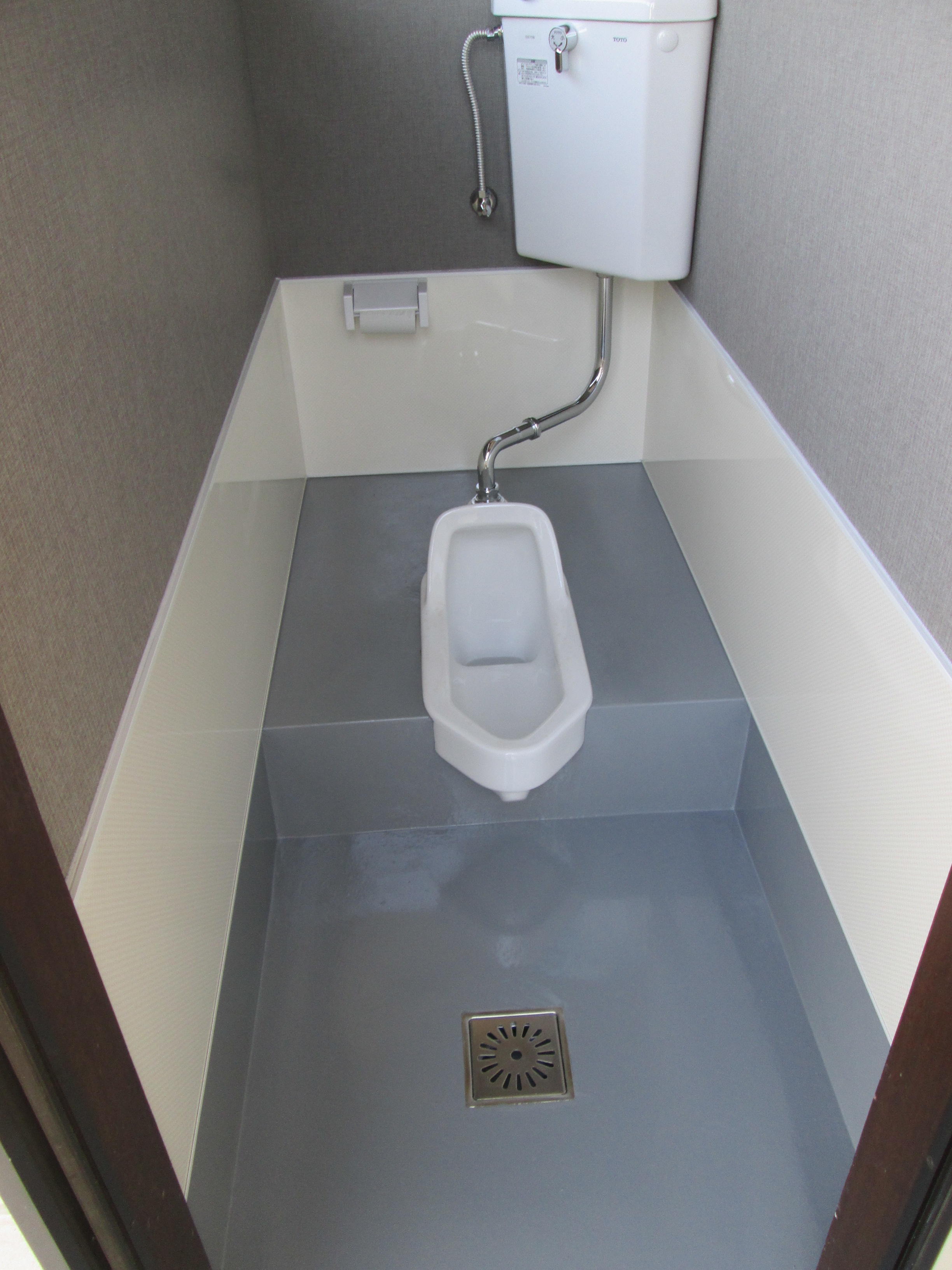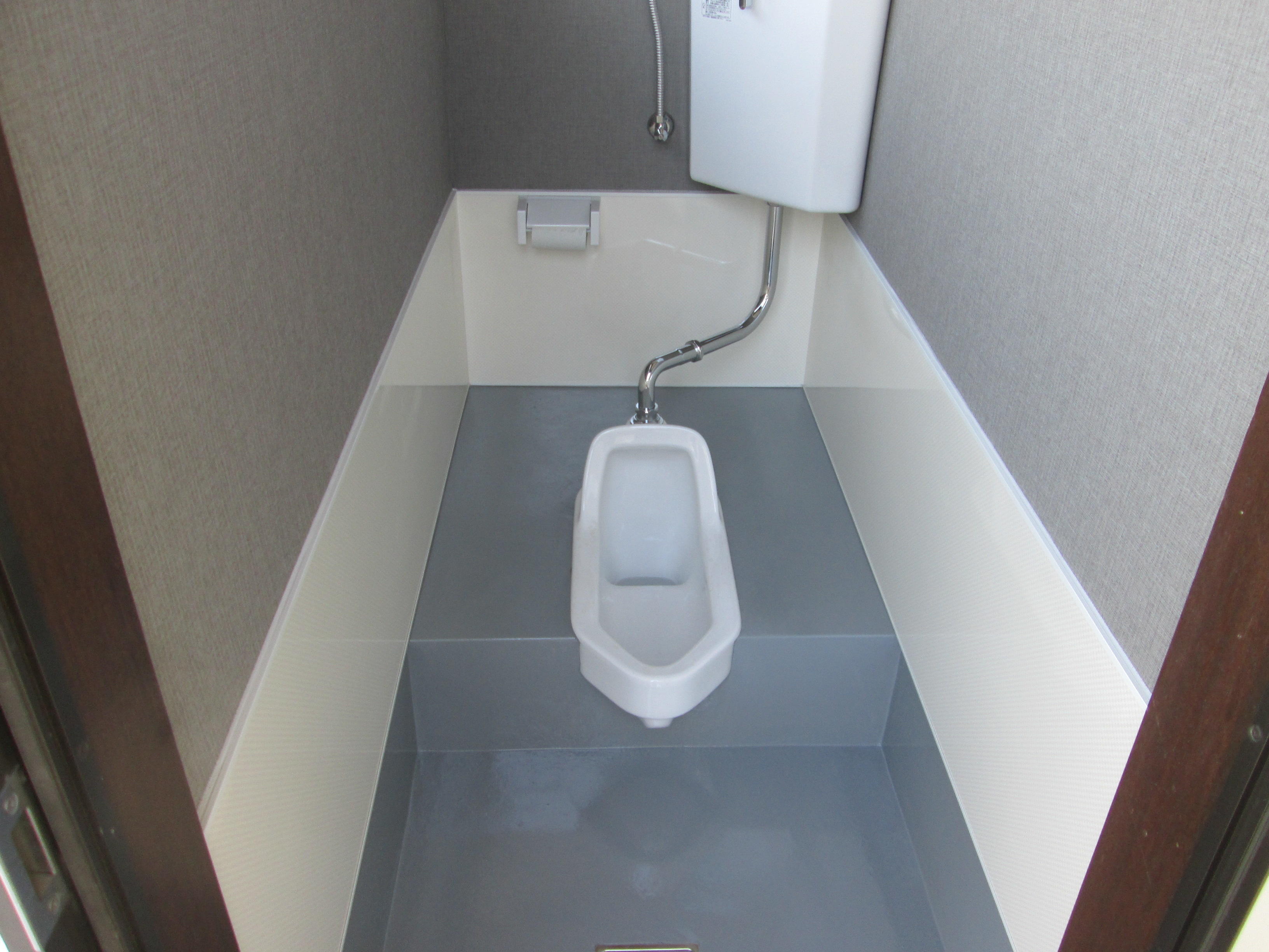 古くなり汚れも落ちなくなってしまったトイレをリフォームしました。 土足で使用するため、汚れがよごれがつきにくく掃除のしやすい床に仕上げました。 また、壁も汚れやすい部分はパネルを採用しました。 文字通りピカピカのトイレに大満足していただきました。