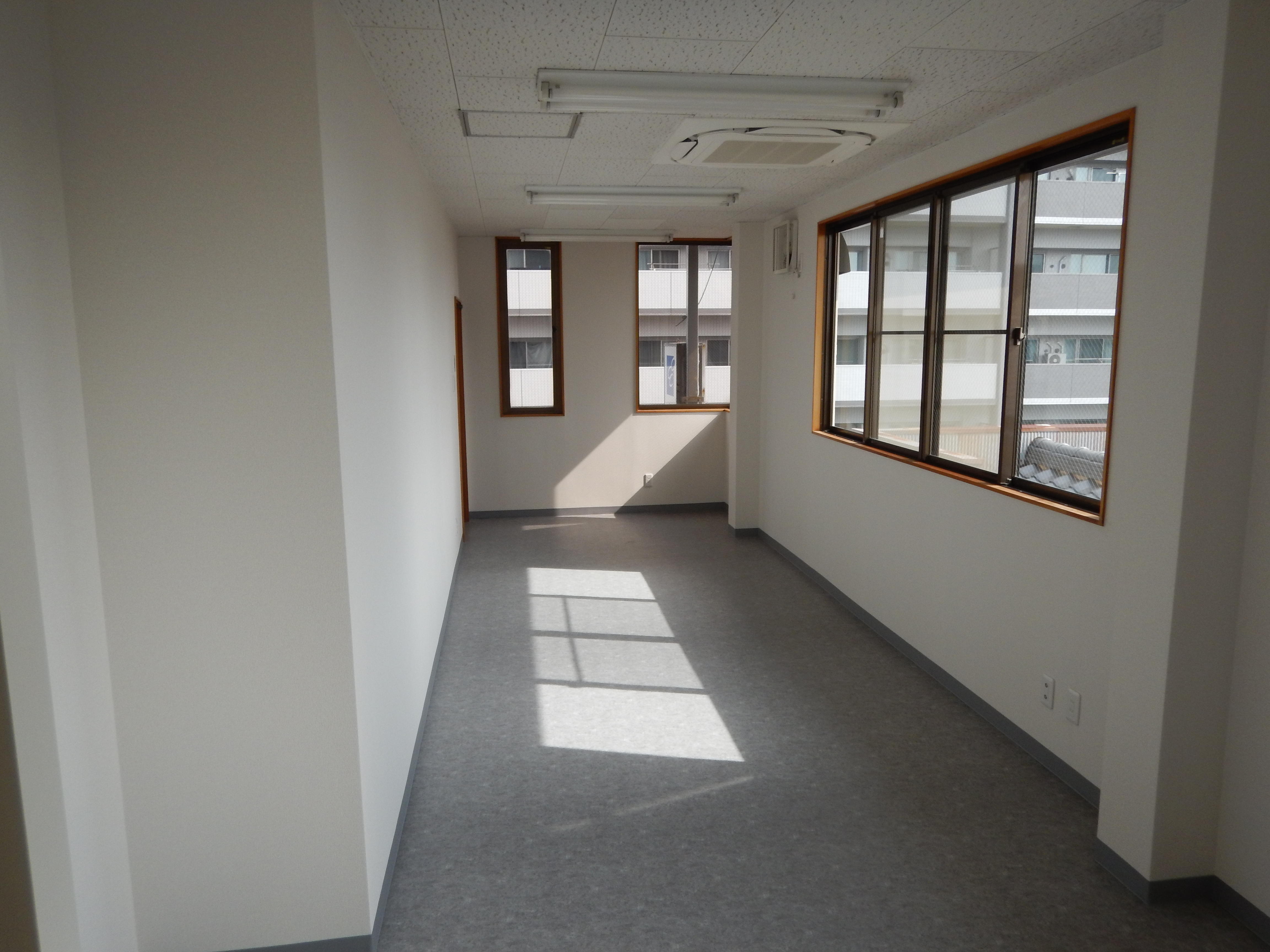 事務所の内装リフォームです。1階、2階も弊社で施工させていただき、今回は3階フロアをリフォームしました。床・壁・天井の内装工事と和式トイレを洋式トイレに交換です。内装は全て剥がして下地を丁寧に作ったのでとてもキレイに仕上がり、お施主様にも大満足していただけました。