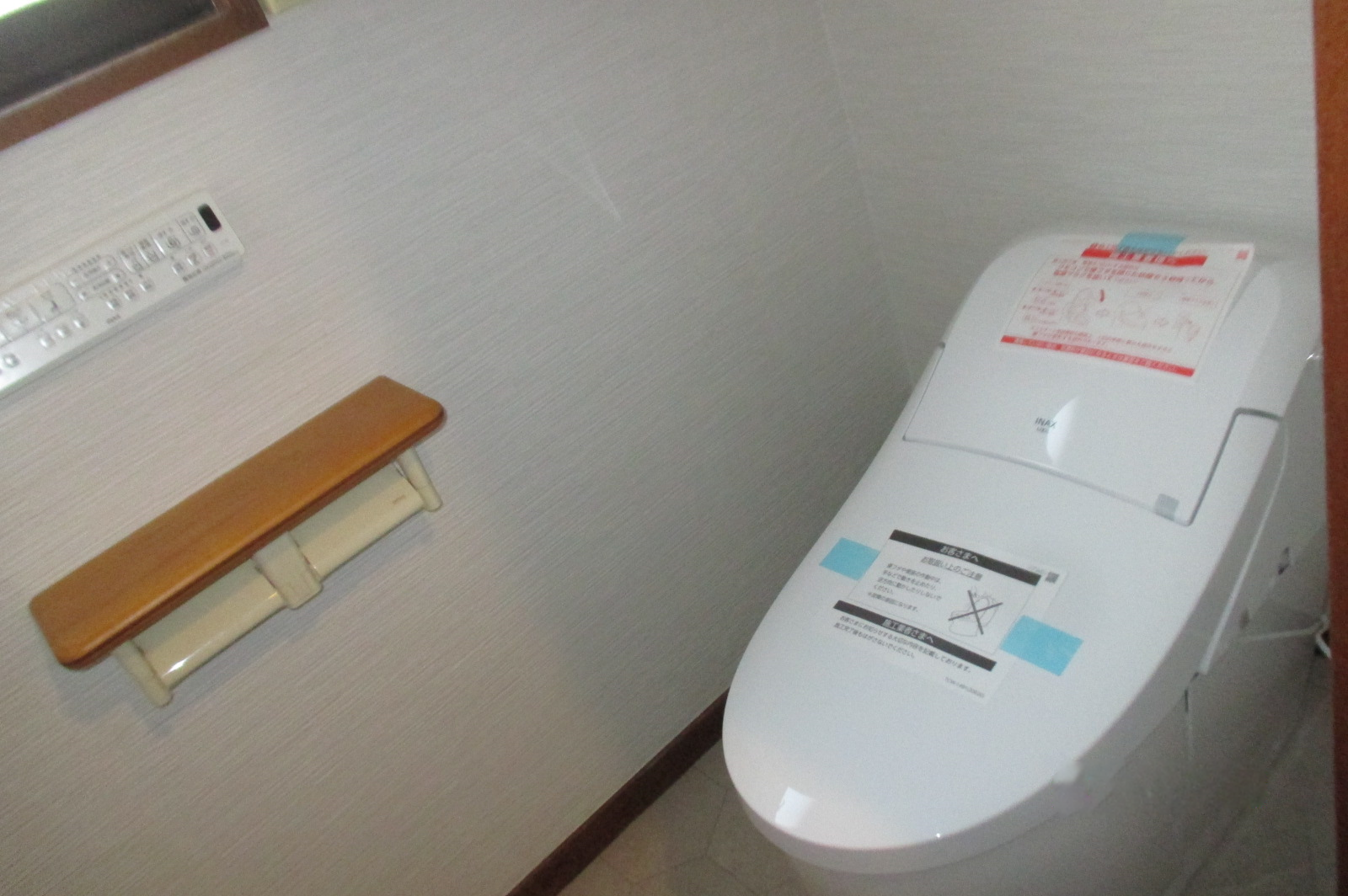 古くなったトイレのリフォーム工事です。トイレは当店大人気のLIXILプレアスLSです。プレアスLS大人気の秘密は、前出寸法を720㎜に抑え、曲線を活かしたデザインにすることでコンパクトなフォルムを実現。従来品よりも70㎜小さくなり狭いトイレでも広々とした空間が生まれます。