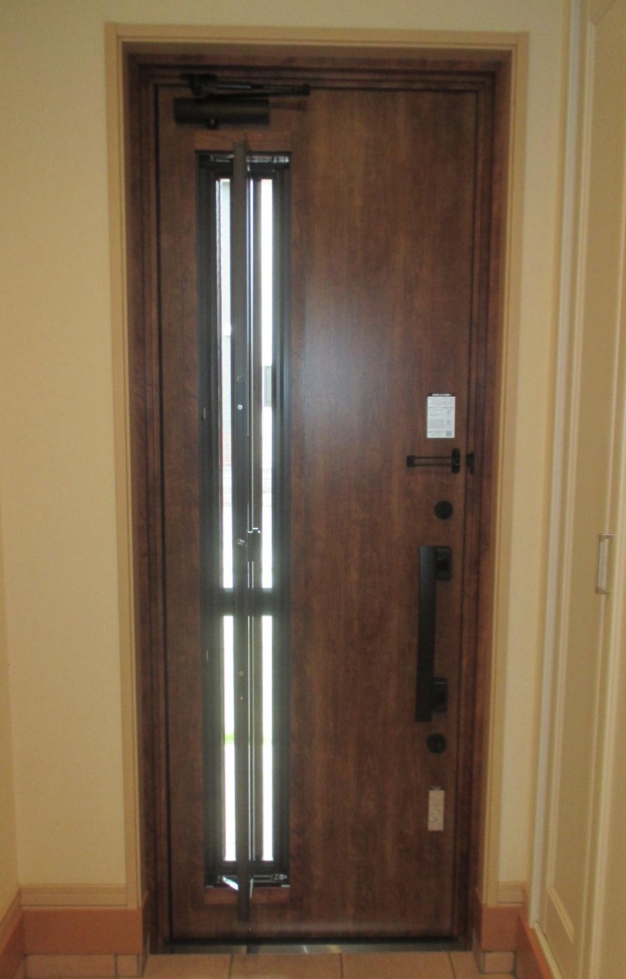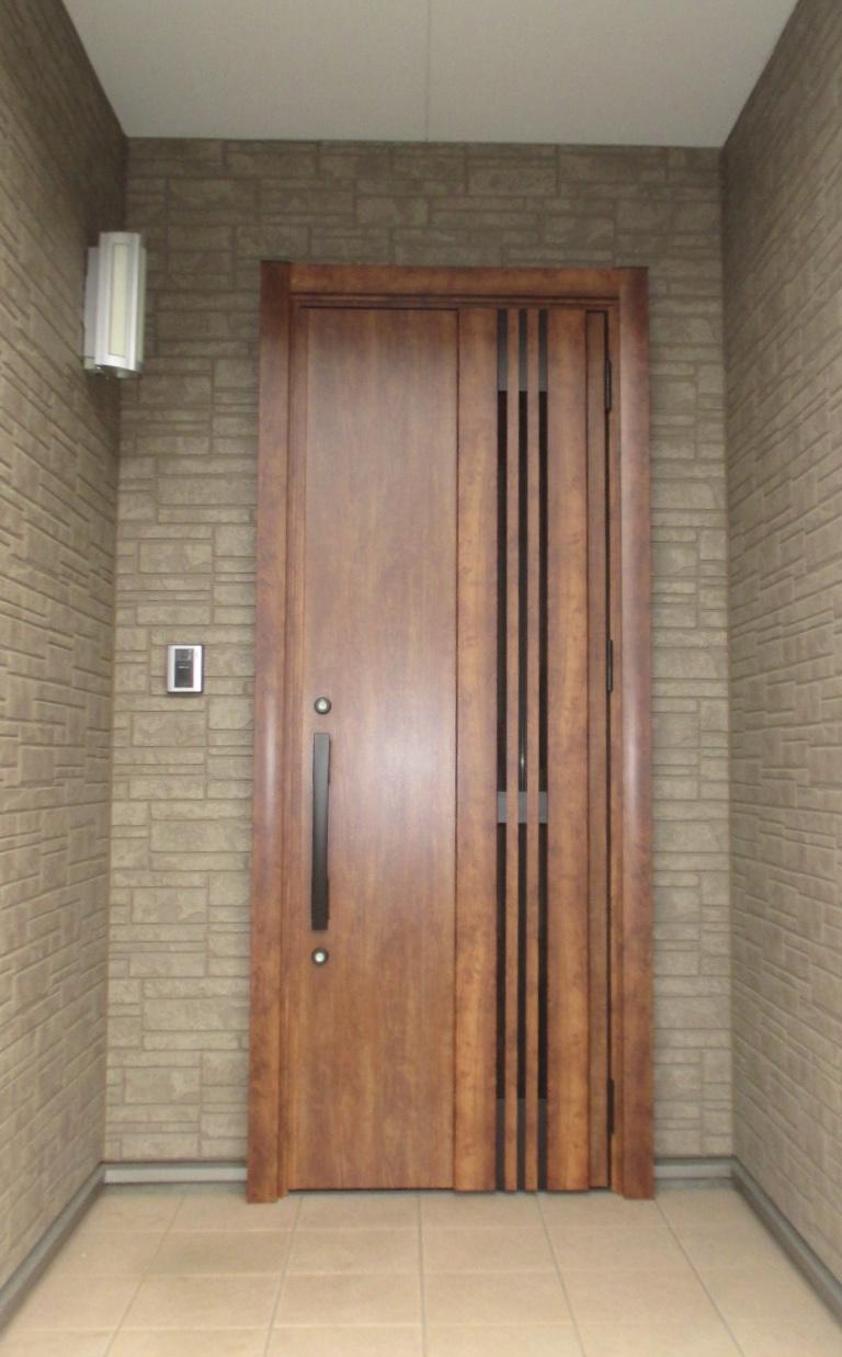彩光部が少なく、室内側に光があまり入らなかった玄関。 彩風式のドアに交換、明るさが上がり、空気の入替の 出来る玄関へ。木目調の色でお家の顔が新しく 生まれ変わりました。玄関の風通しを良くすることで、 夏でも涼しく快適に過ごせます。 ニオイや湿気のこもる玄関・・開けっ放しにするのは 危険ですので、彩風式のドアはオススメです。