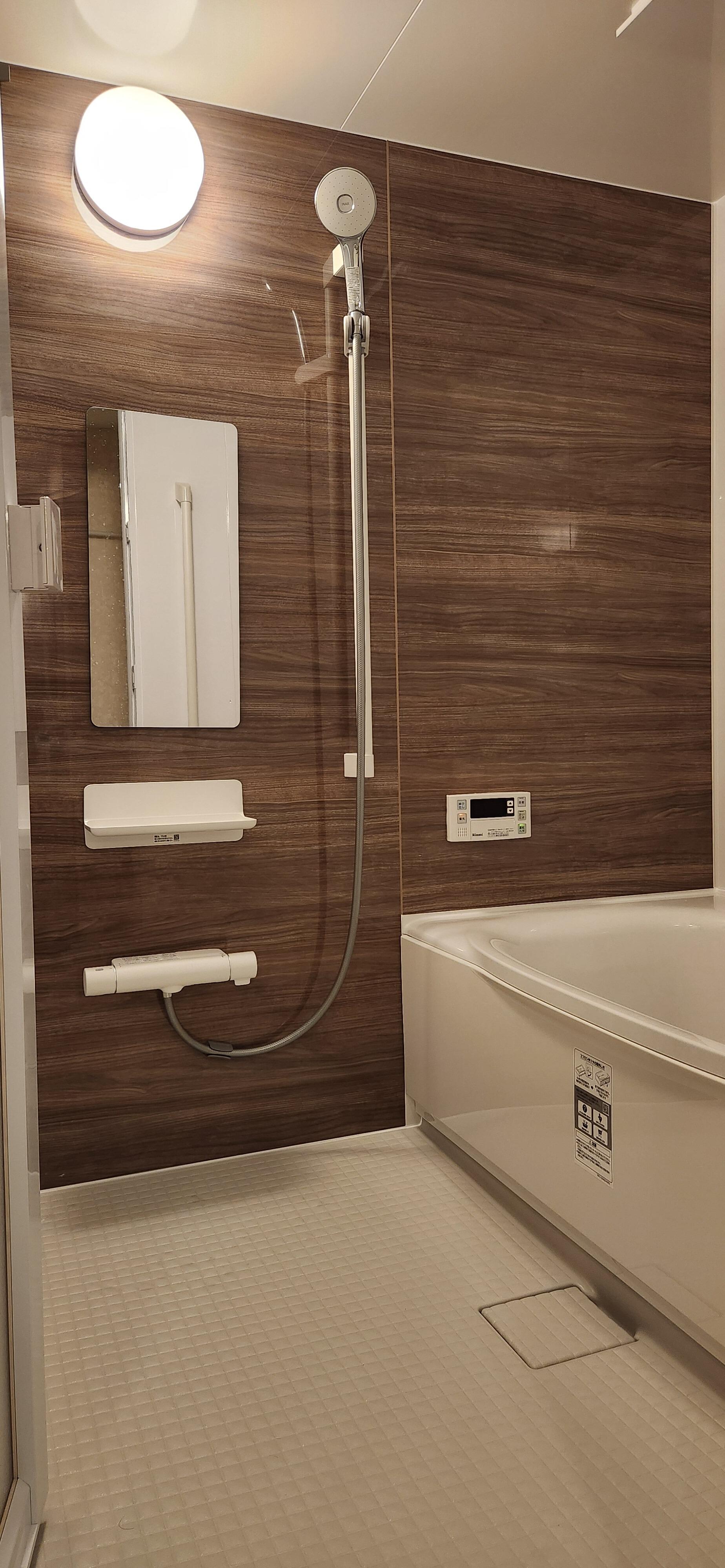 タオルバーやカウンターは撤去、新たに浴室換気乾燥