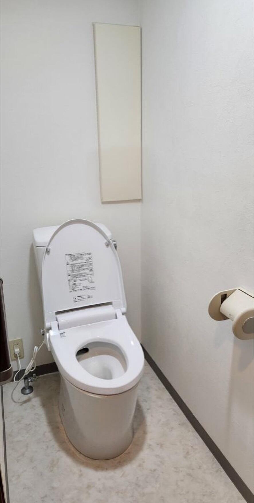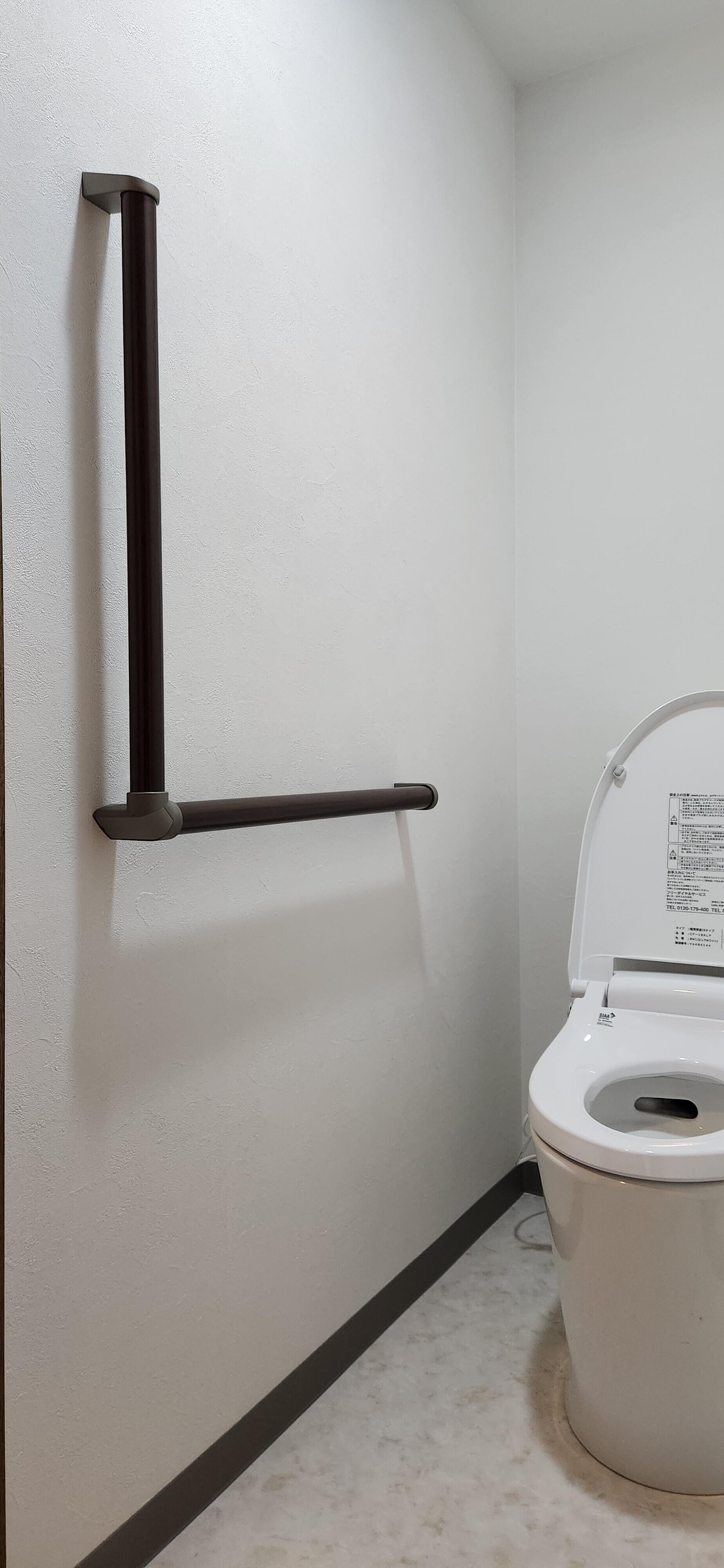 マンションのトイレリフォームのご依頼をいただきました。 お施主様のご希望は、手洗い無し、便座の洗浄ノズルも無くし シンプルに暖房便座のみへ。 トイレはLIXIL製品をご採用いただきました。 床のクッションフロアは少し模様のあるデザイン、 壁クロスはトイレと同じ白に揃えました。 立ち座りのサポートにL型の手すりを設置し、 安心、安全なトイレとなりました。