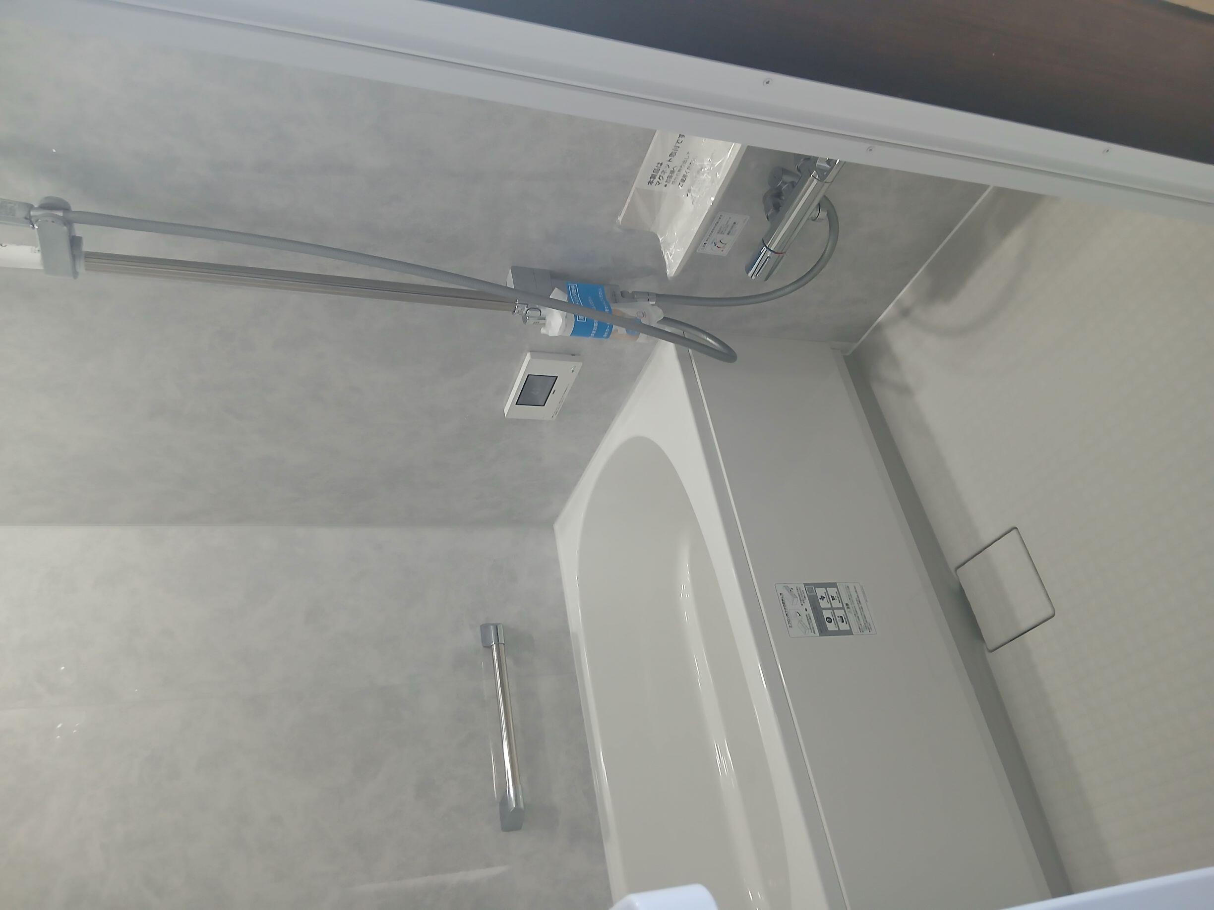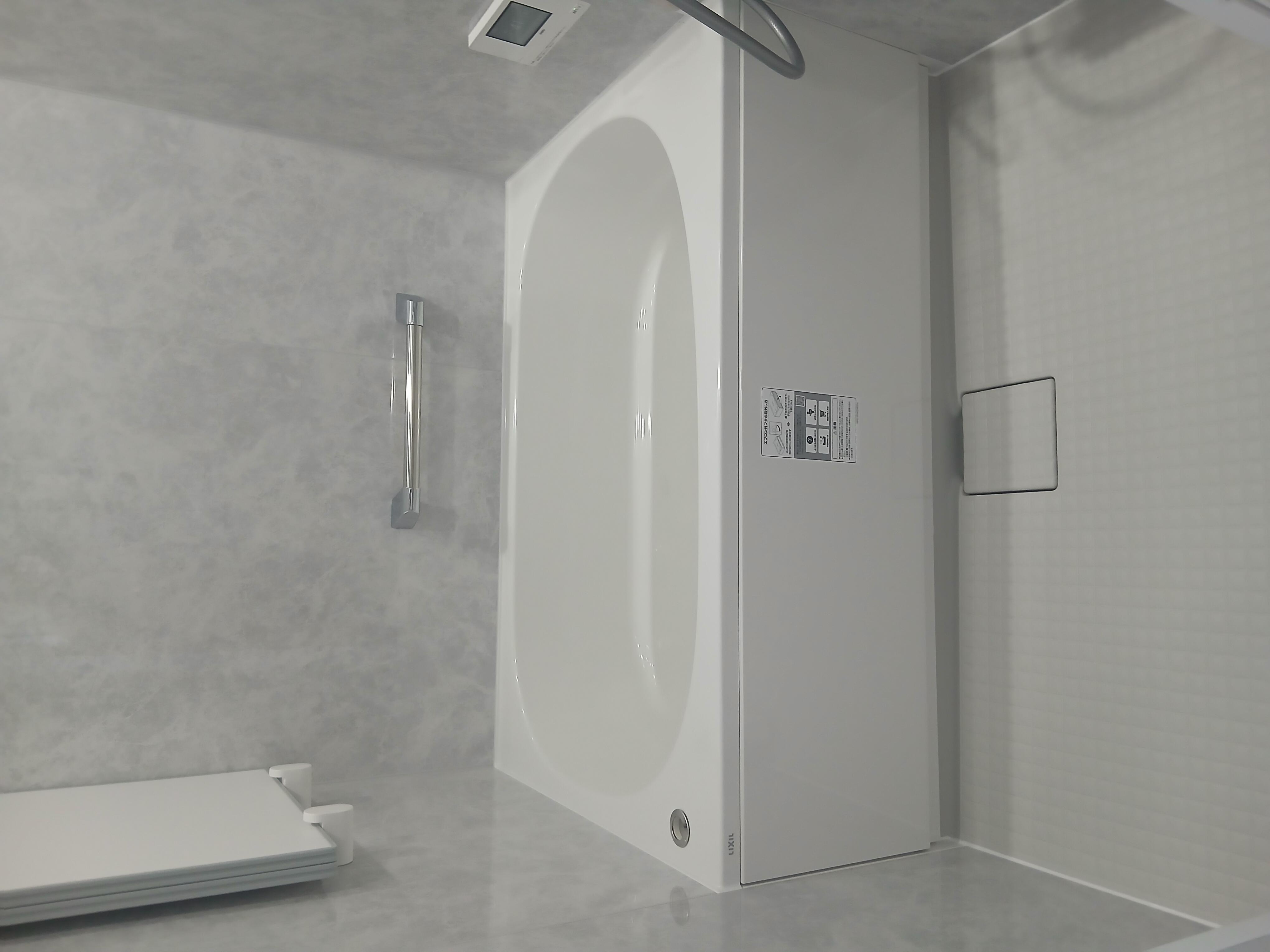 今流行りのシンプルでお掃除がしやすい浴室です。鏡なしカウンターなしなので、鏡のウロコ汚れやカウンターのピンクカビに悩まされることもありません。また、無駄を省いた分、壁パネルを豪華な全面張りにしたので、毎日のお風呂時間がホテルライクな贅沢空間になりました。浴槽はもちろん保温性の高い高断熱浴槽なのでお湯が冷めにくくなりました。そして、出入口のドアにルーバーがないのでお掃除がとても楽です。シンプルでキレイが続く浴室に仕上がりました。