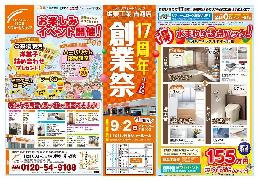 9月2日(日)LIXIL小山ショールームで「17周年創業祭」を開催致します!