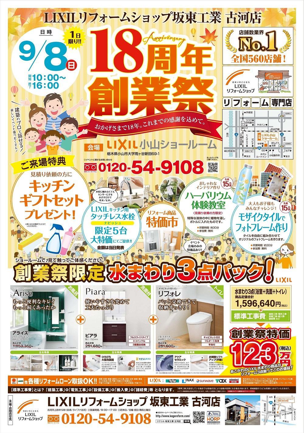 18周年を記念して、9月8日(日)LIXIL小山ショールームでイベントを開催いたします。
