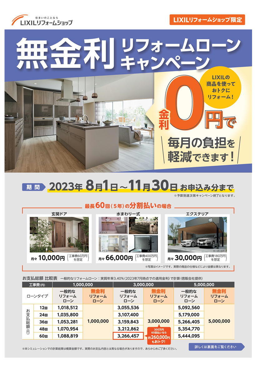 無金利リフォームローンキャンペーン