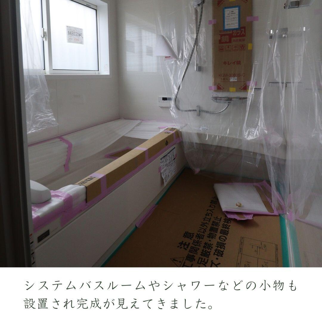 システムバスルームやシャワーなどの小物も設置され完成が見えてきました。