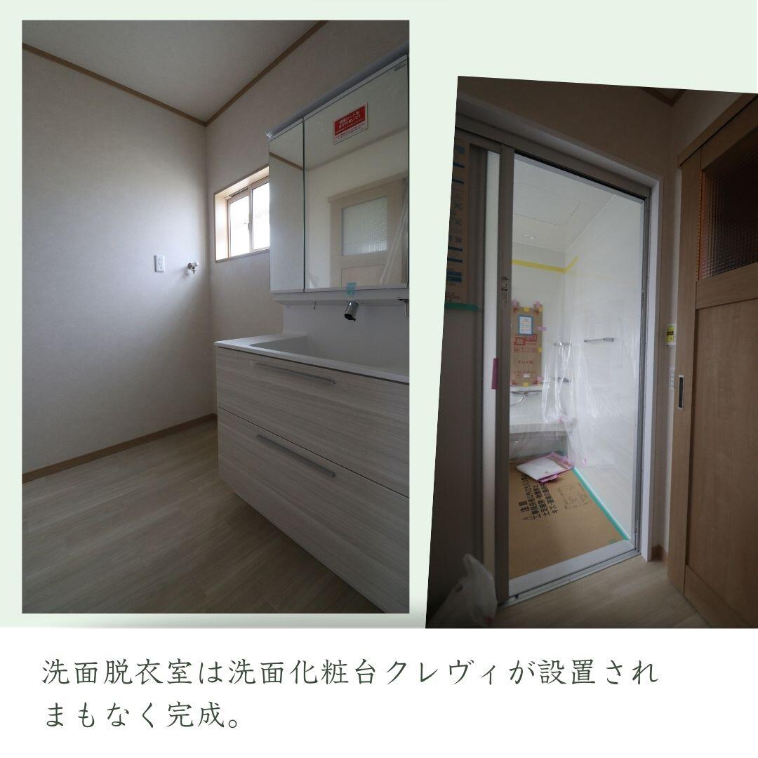 洗面脱衣室は洗面化粧台クレヴィが設置されまもなく完成。