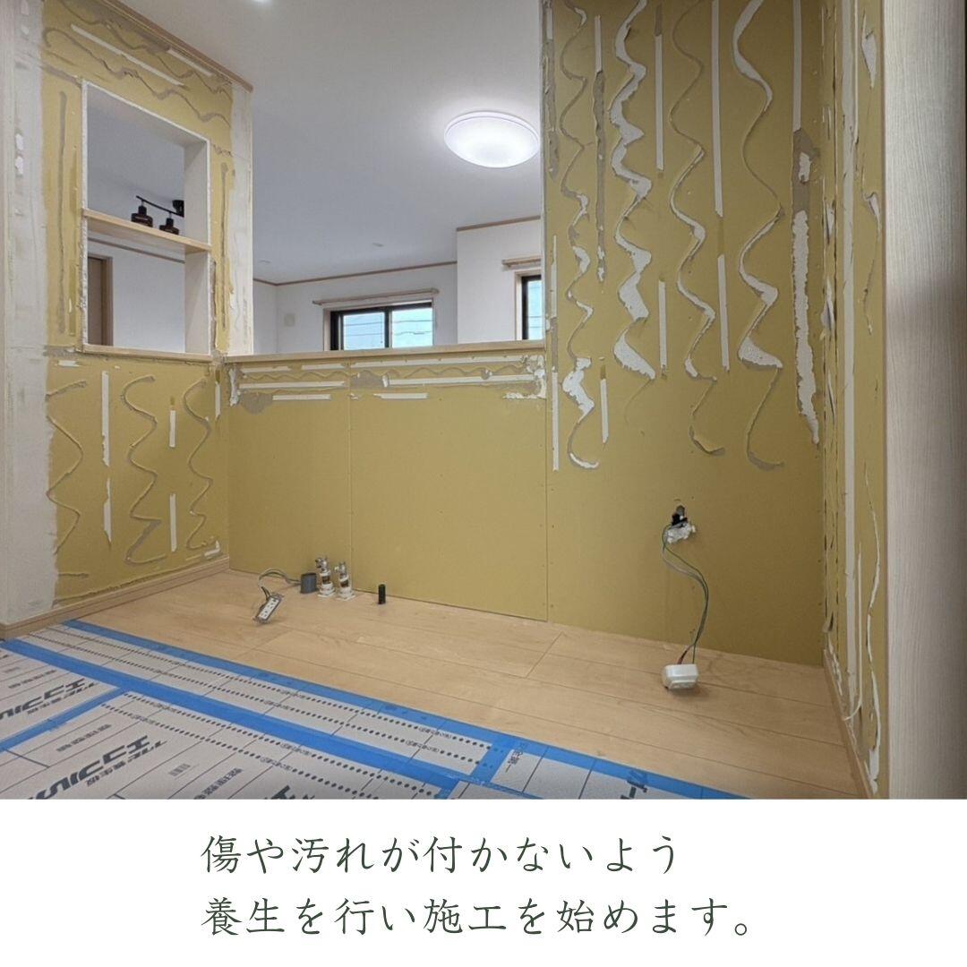 施工前に傷や汚れが付かないよう、養生を行い施工を始めます。