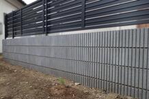 【つくば市】リピート 外構 塀リフォーム スリット入りブロックに重厚な格子デザインフェンスを