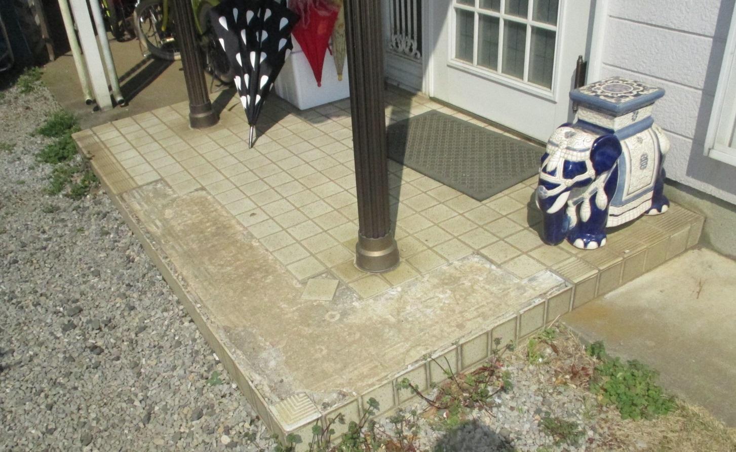 人が一番出入りする所なので、はがれたままだと危険です。 雨でぬれてもすべりにくいタイルです。