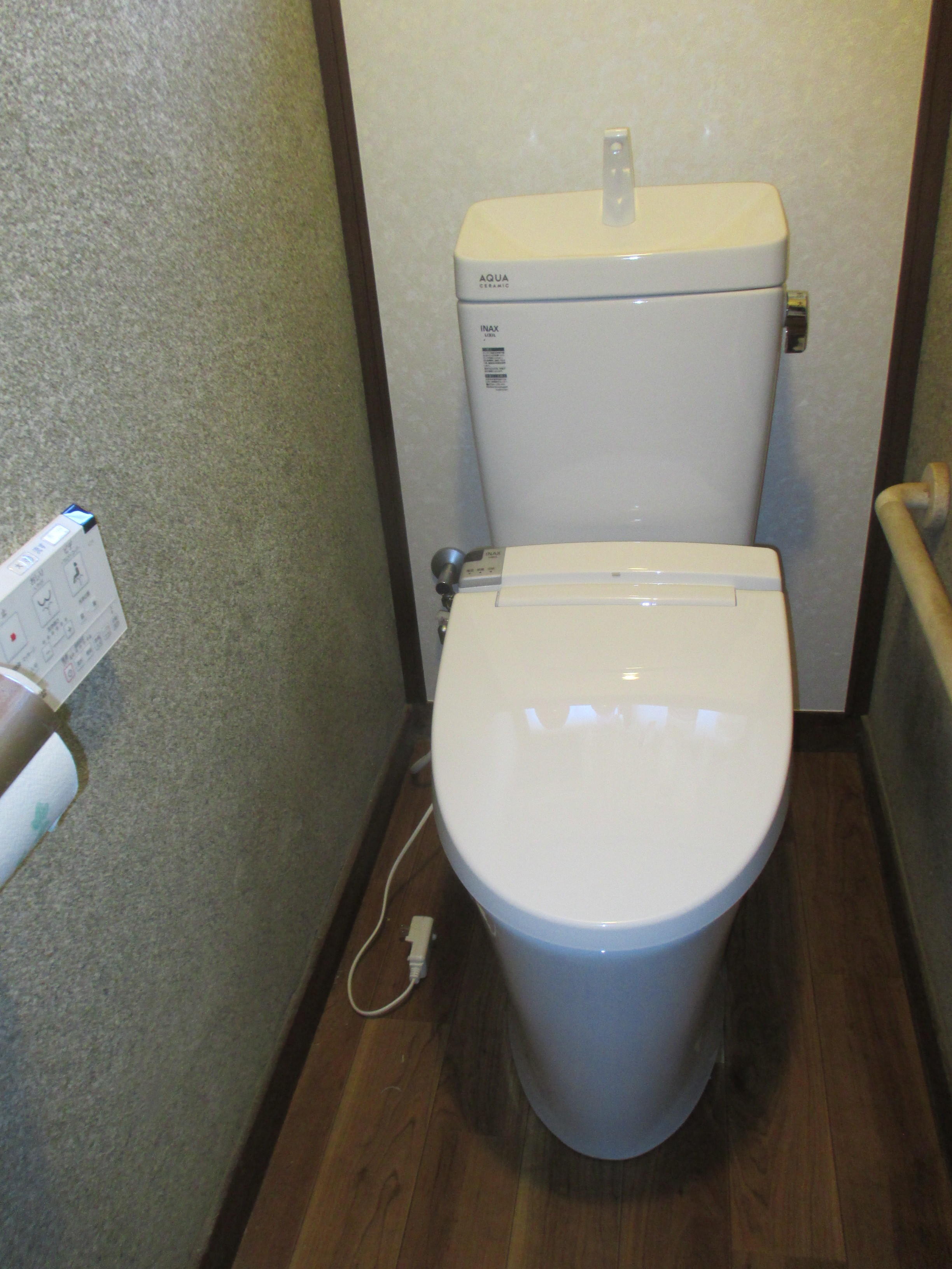 便器の交換と内装のリフォームです。 今までお使いのトイレは洗浄便座のない、 タイプでしたので、今回洗浄便座を設置するために、 コンセントを新設しました。 また、壁には手すりがついていたので既存の手すりを活かし、 内装工事は床と背面のみ貼替えました。 お客様のご要望に使いやすさをプラスしたご提案と、 コストパフォーマンスを考えたリフォームです。