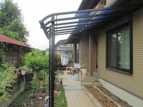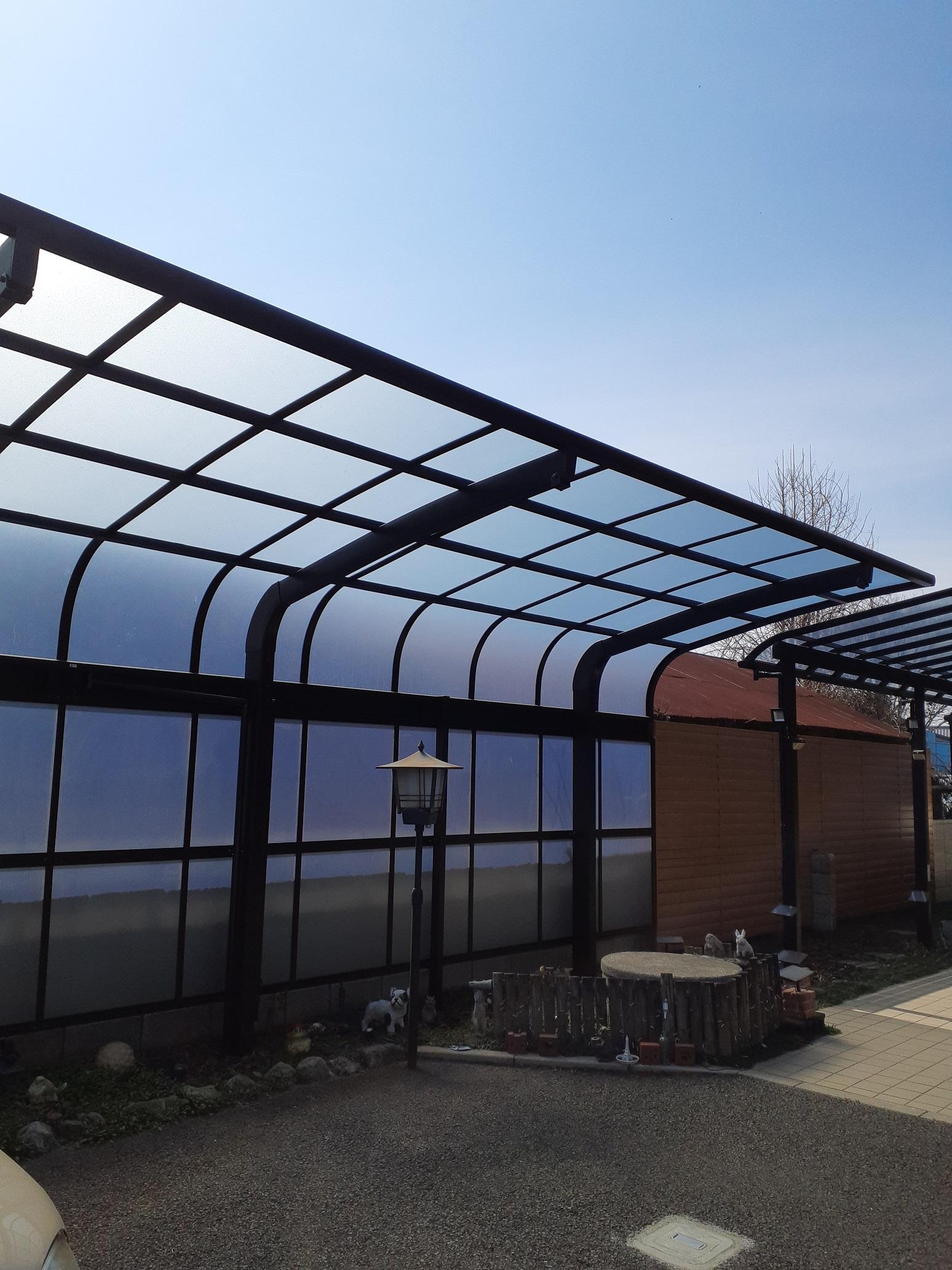 もともと屋根付きのお洗濯干し場でしたが、サンルームの中に干せるようになったので強風の雨の日でも安心してお洗濯ものを干せるようになりました。また、ご高齢のお父様のために玄関から車庫までの移動の時、雨の日でも濡れないようにとテラス屋根を設置しました。雨の日でも傘をささずに移動できるので安心・安全で便利です。そして、以前はブロック塀と生垣で目隠しをていましたが、木目調の目隠しフェンスを設置したので剪定の必要もなくなり素敵に仕上がりました。