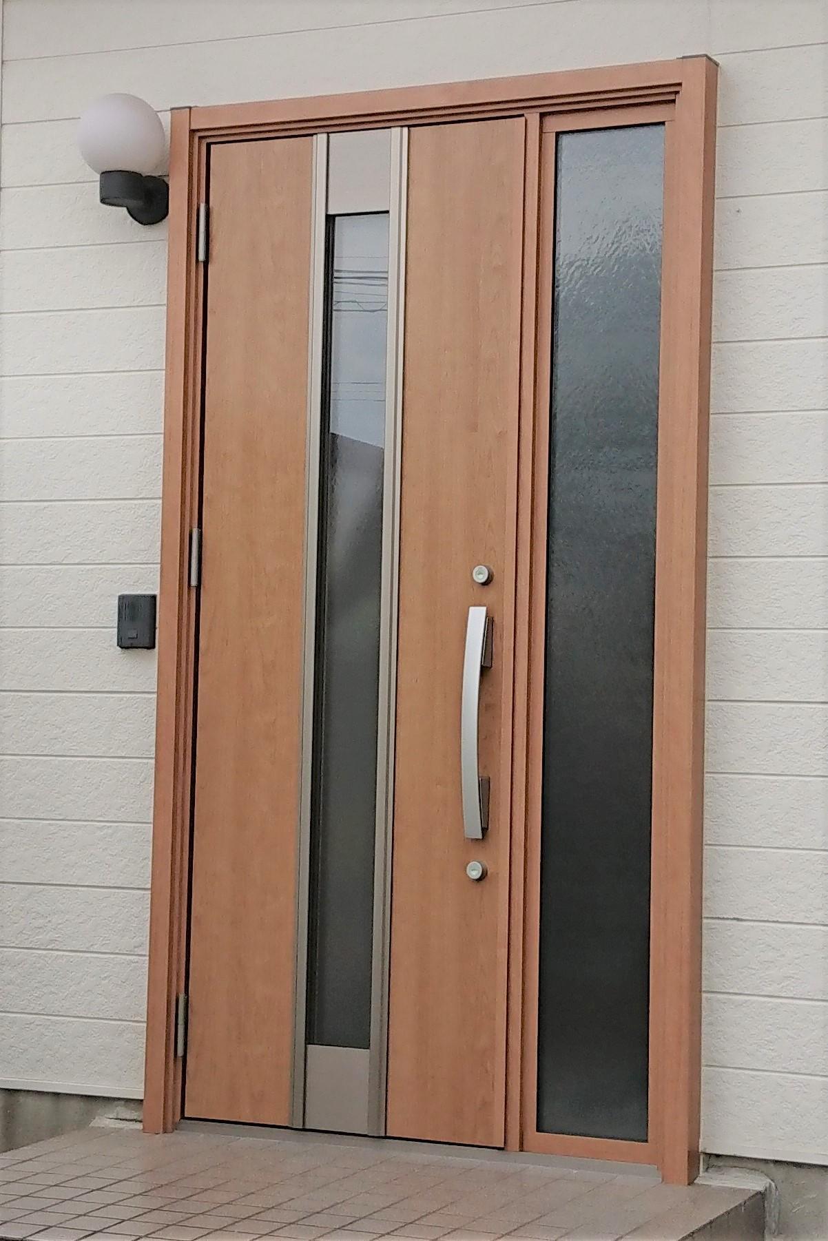 真夏になると西日の強い日射しで玄関ドアがとても熱くなり、玄関ドアで目玉焼きが焼けるくらいになるとお悩みでした。そこで、これからの猛暑に備えて断熱効果のある玄関ドアに交換しました。採光部分のガラスも複層ガラスを使用していますので結露を軽減します。開口部の断熱性をアップすると夏は涼しく、冬は暖かい玄関になります。今年の夏は断熱効果を体感していただけると思います。