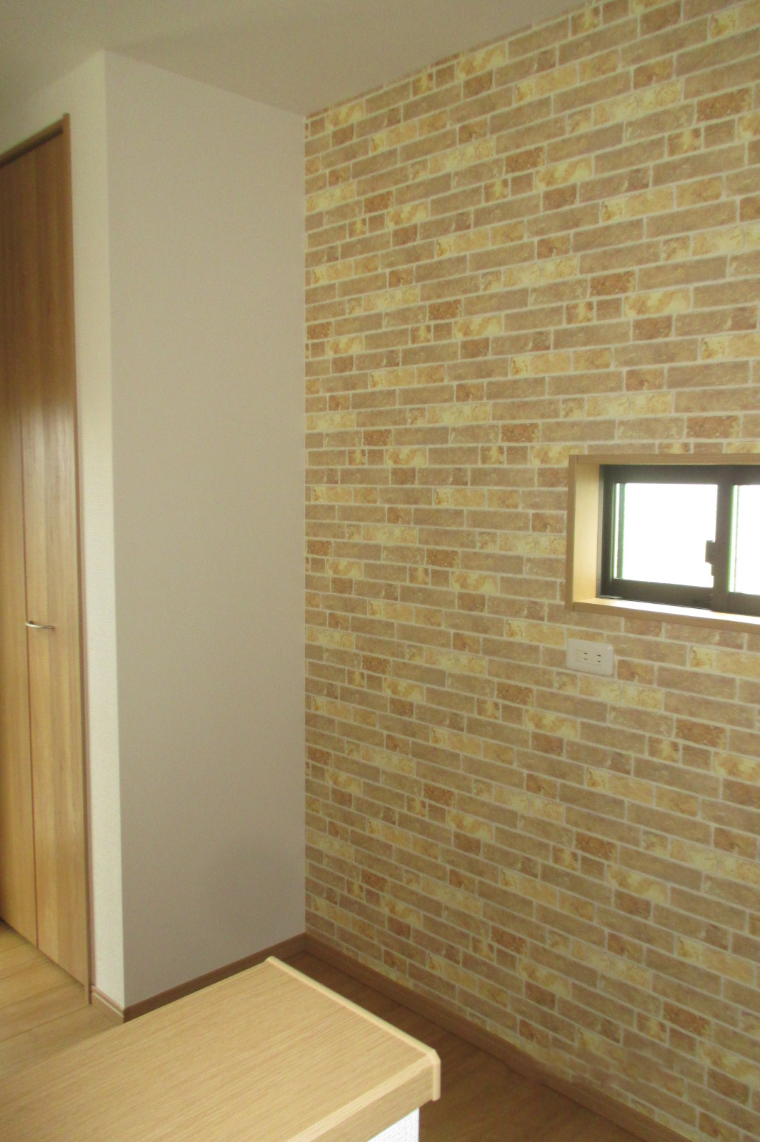 新築のお宅へキッチン収納を設置しました。木目調の扉に黒の取手がアクセントととなりキャビネット全体を引き締めてくれて、おしゃれな壁紙と相性よく仕上がりました。カウンターには人造大理石をお選びいただき高級感のあるキャビネットに仕上がりました。
